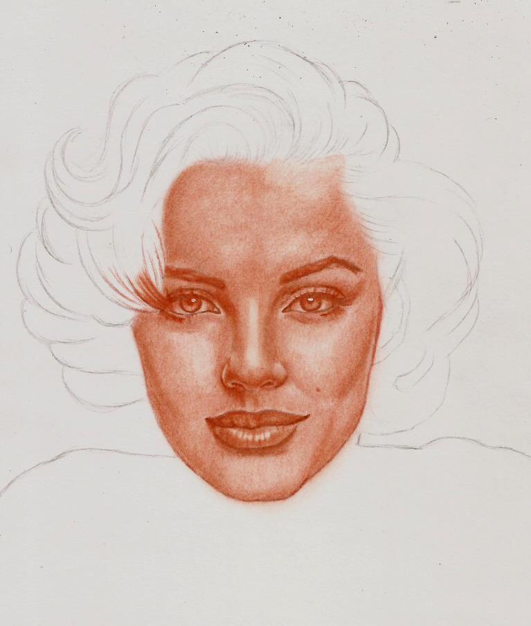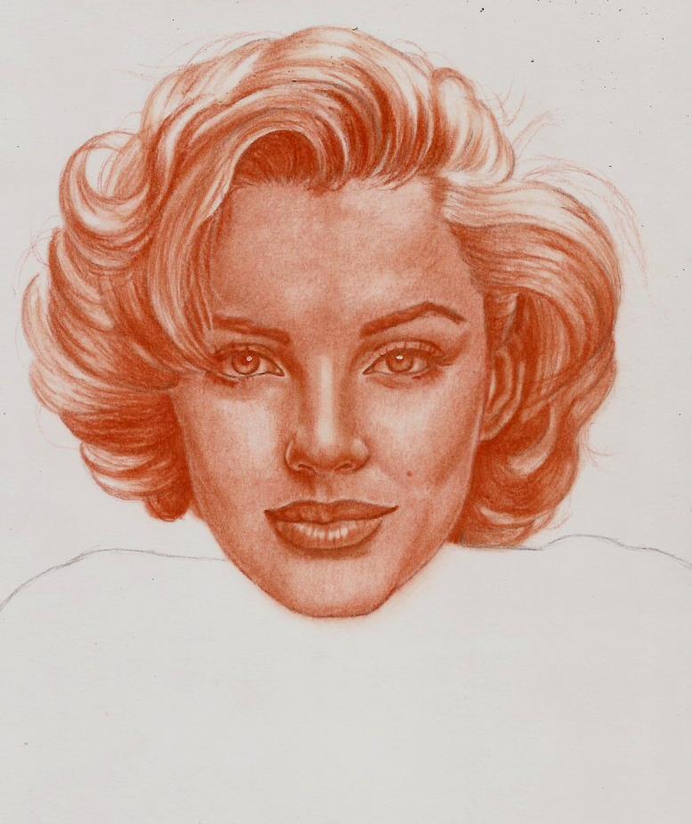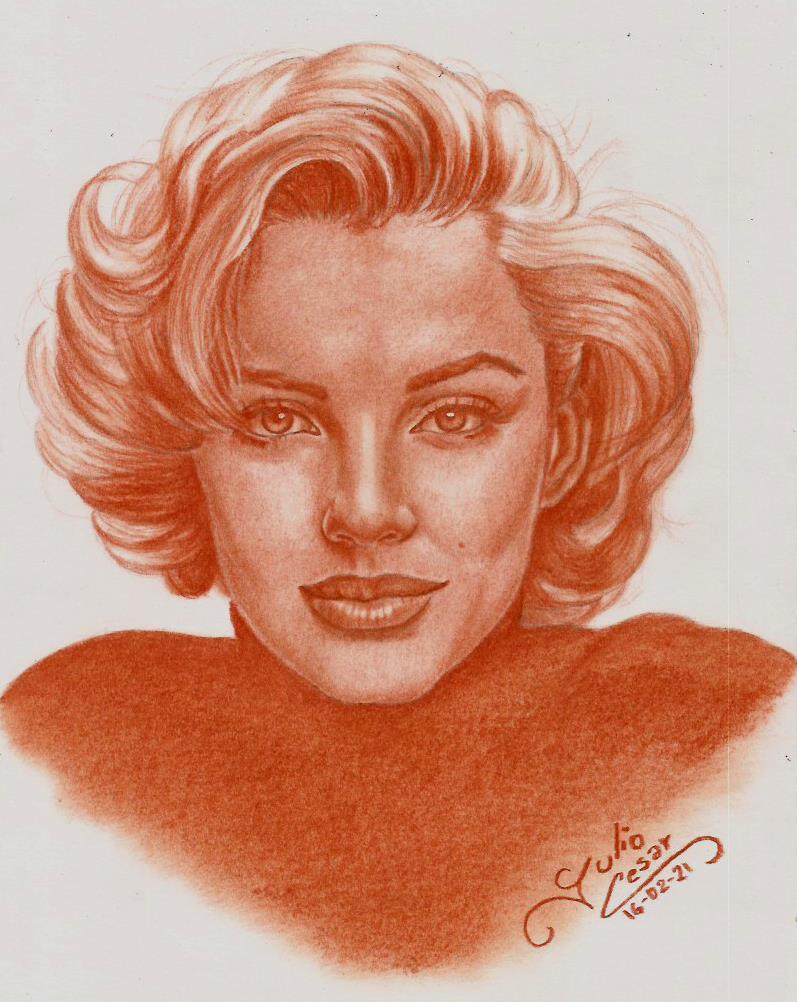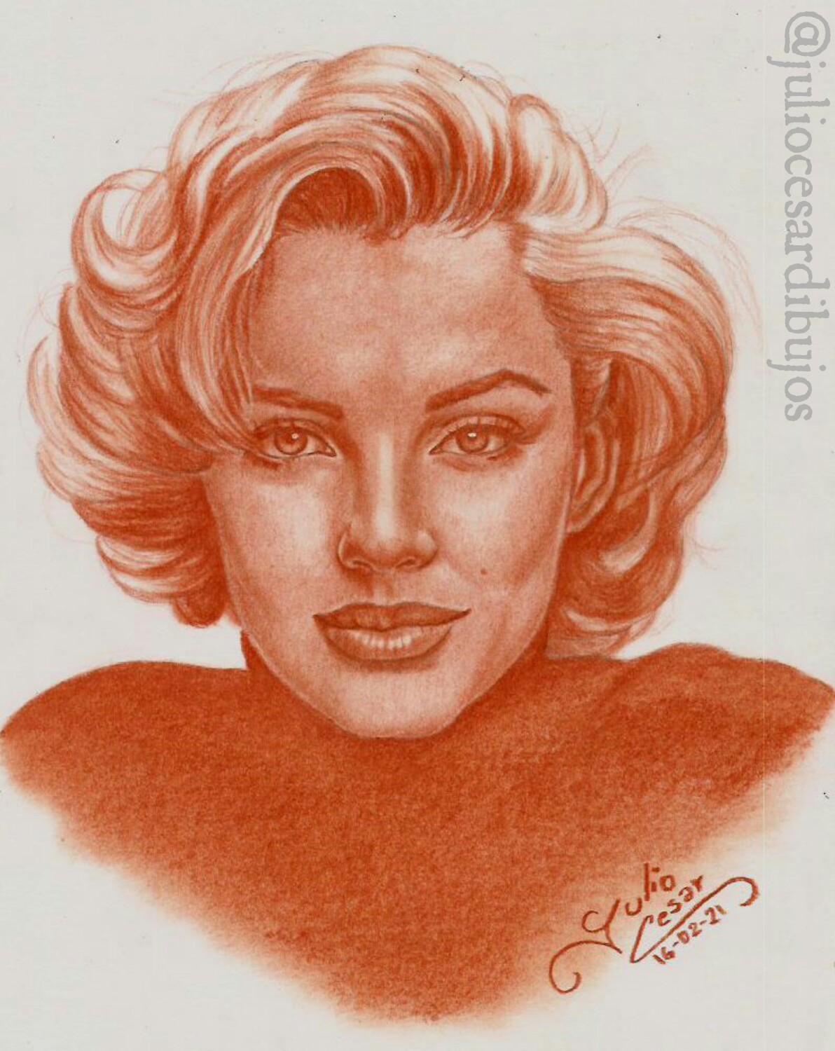 Hola! que tal amigos? espero que estén muy bien... hoy les quiero mostrar mi dibujo mas reciente, y es un retrato de la bellisima Marilyn Monroe hecho con una técnica que no uso comúnmente y es la sanguina. Es un material bastante genial y ese color ladrillo le da un toque muy distinto a los dibujo...