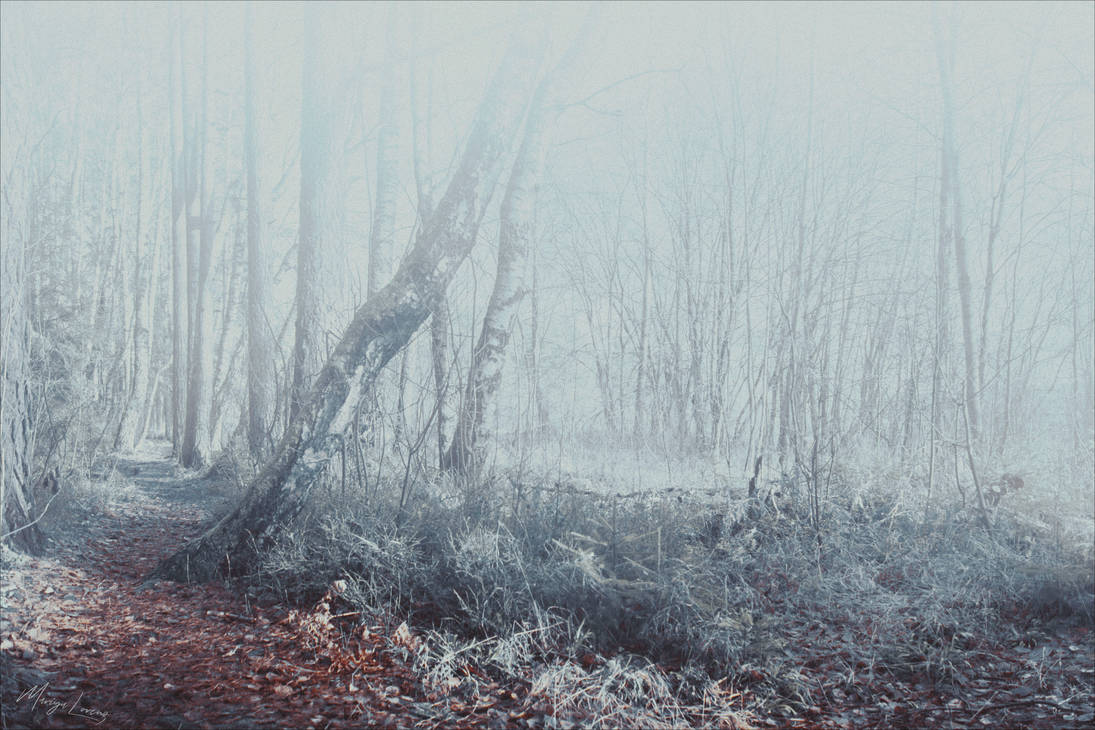 The forest is covered with frosty frost. The picture was taken in early spring. Quiet, calm place to relax and walk. Fabulously beautiful Belarusian nature.