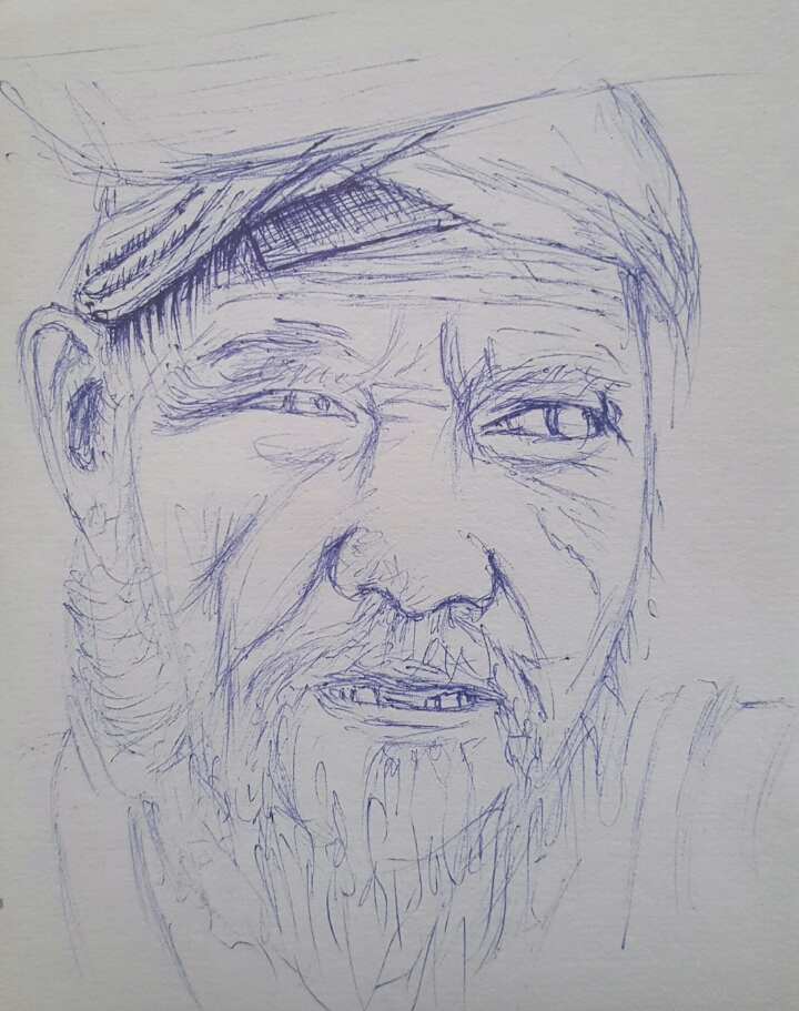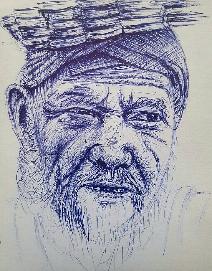Today, I want to share with you my new art work. It's a random portrait of an old man with white beards carrying a basket.