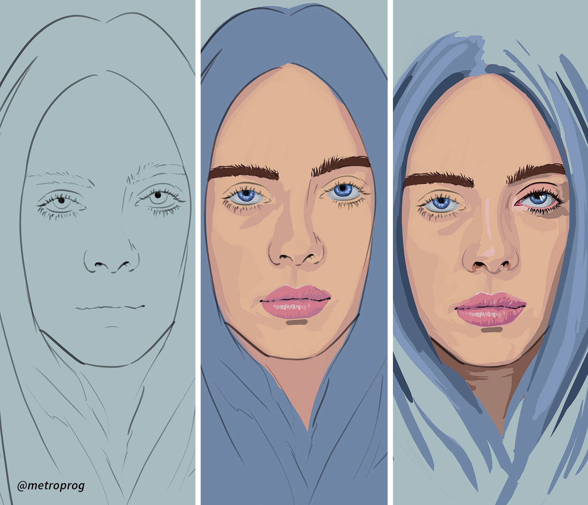 I used a mix of the two styles I paint in for her. I love the result, I will make more.