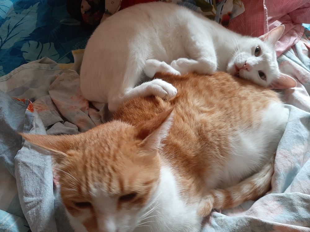 Early today morning after I finished my meditation to make breakfast, my two cats have already gone into their state of slumber on my bed ofcourse.
