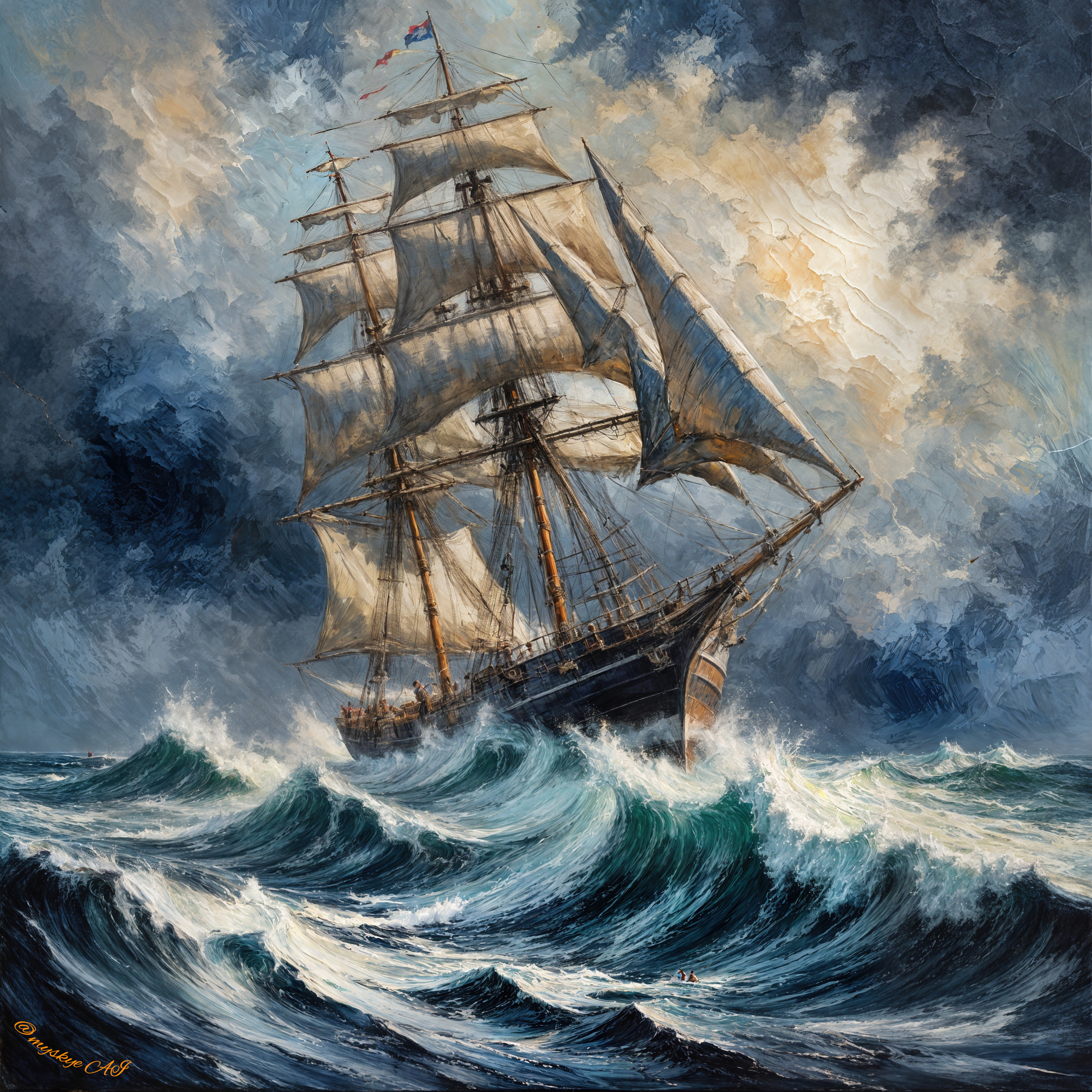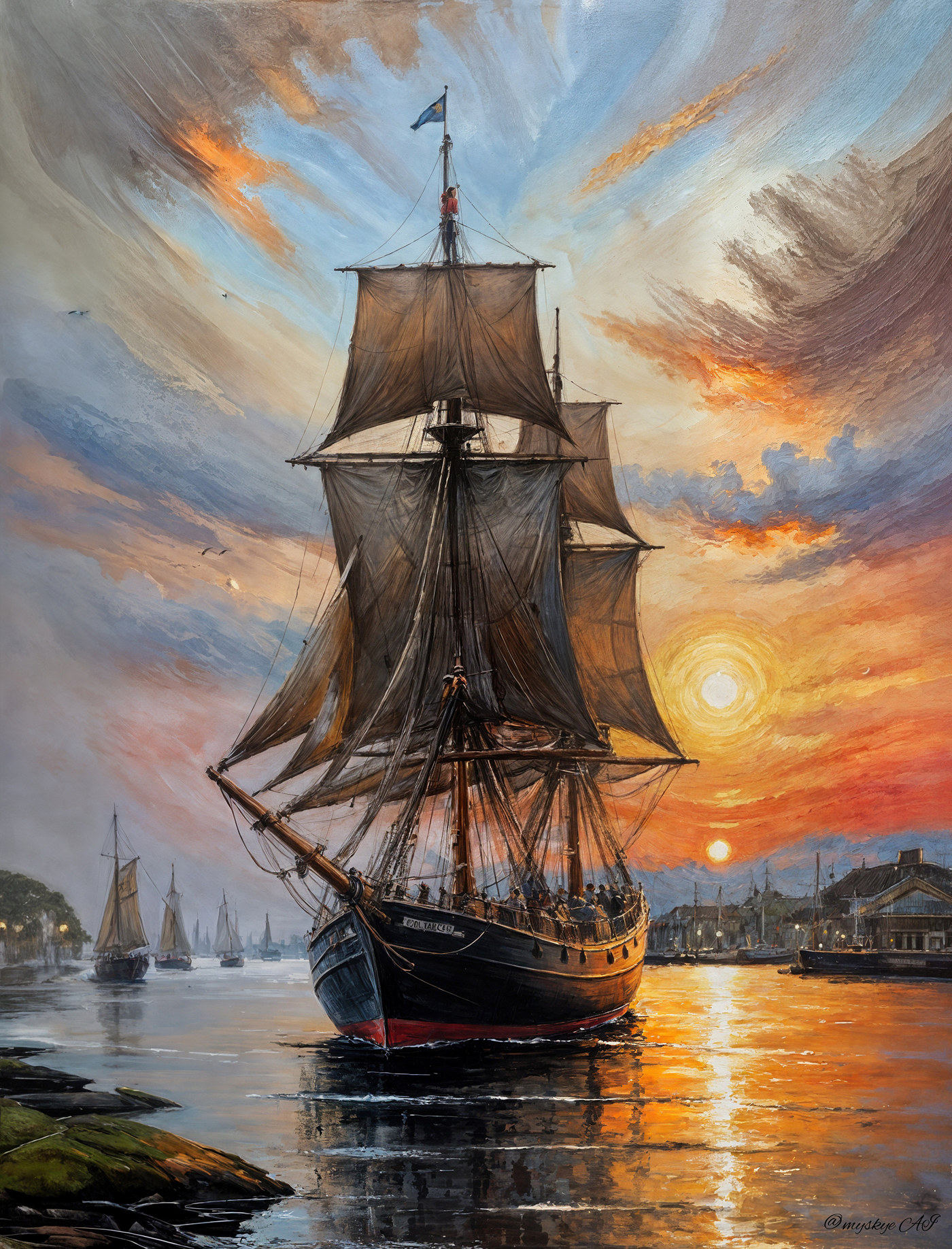 So did you all make it to the other side of the gorge? If so, then you can still enjoy the rest of the weekend. Today I came back to my sailing ships, and I love sailing ships. I particularly like the old tall sailing ships made of wood. I have reworked two of my older pictures, and I hope you like them.