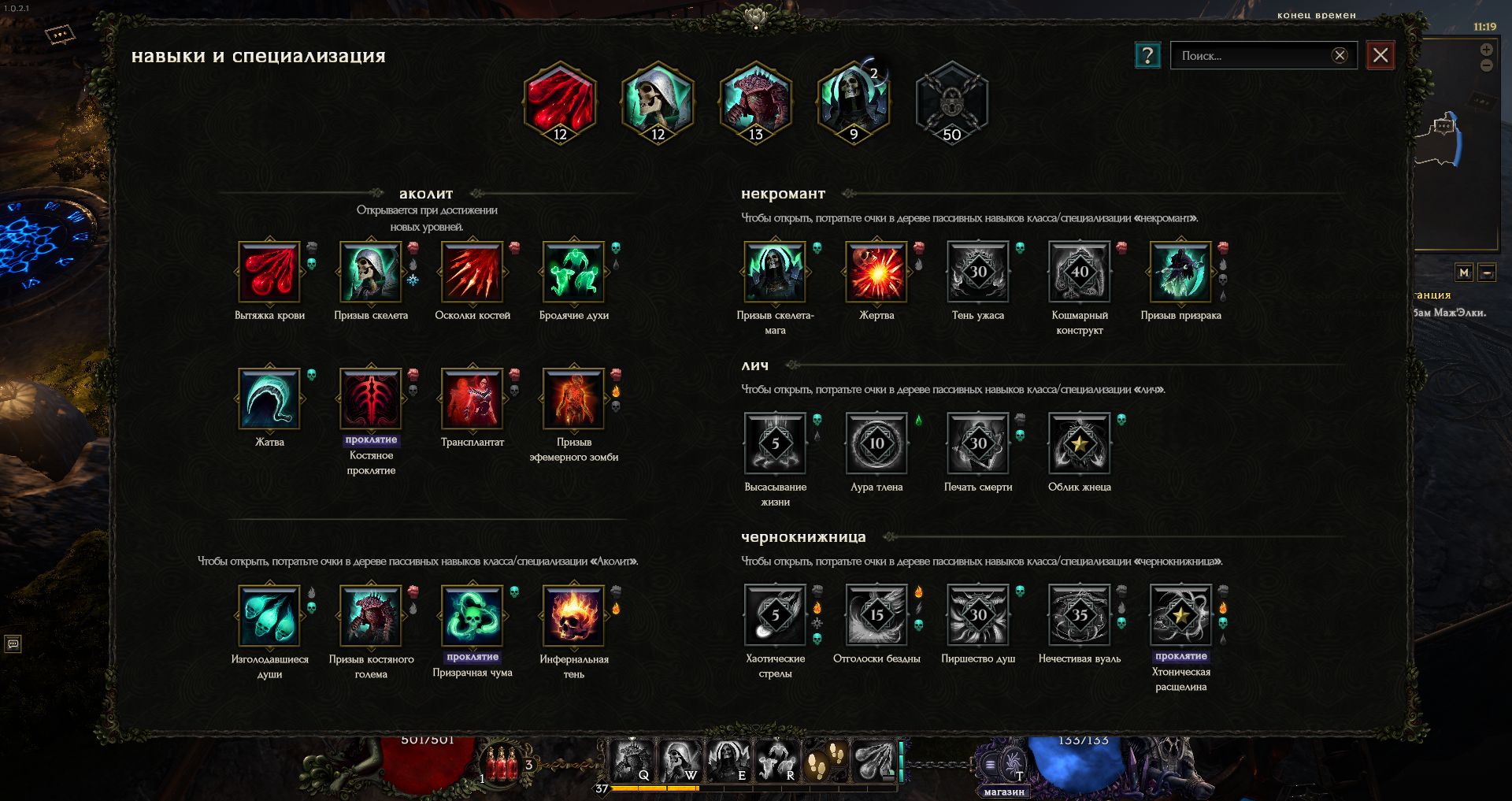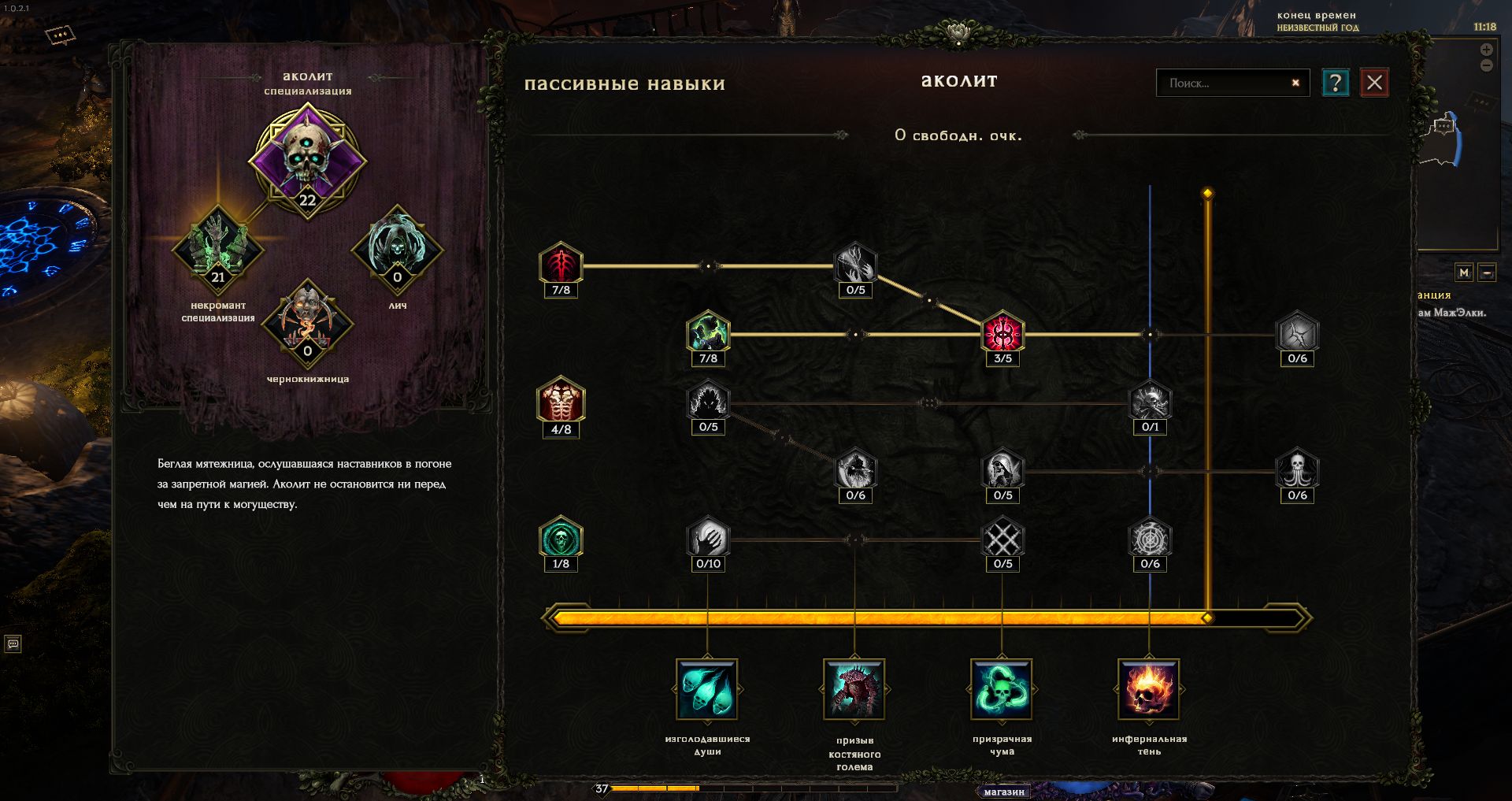 Вот полный список активных навыков Аколита.И как видите тут есть ещё и улучшение активных навыков.