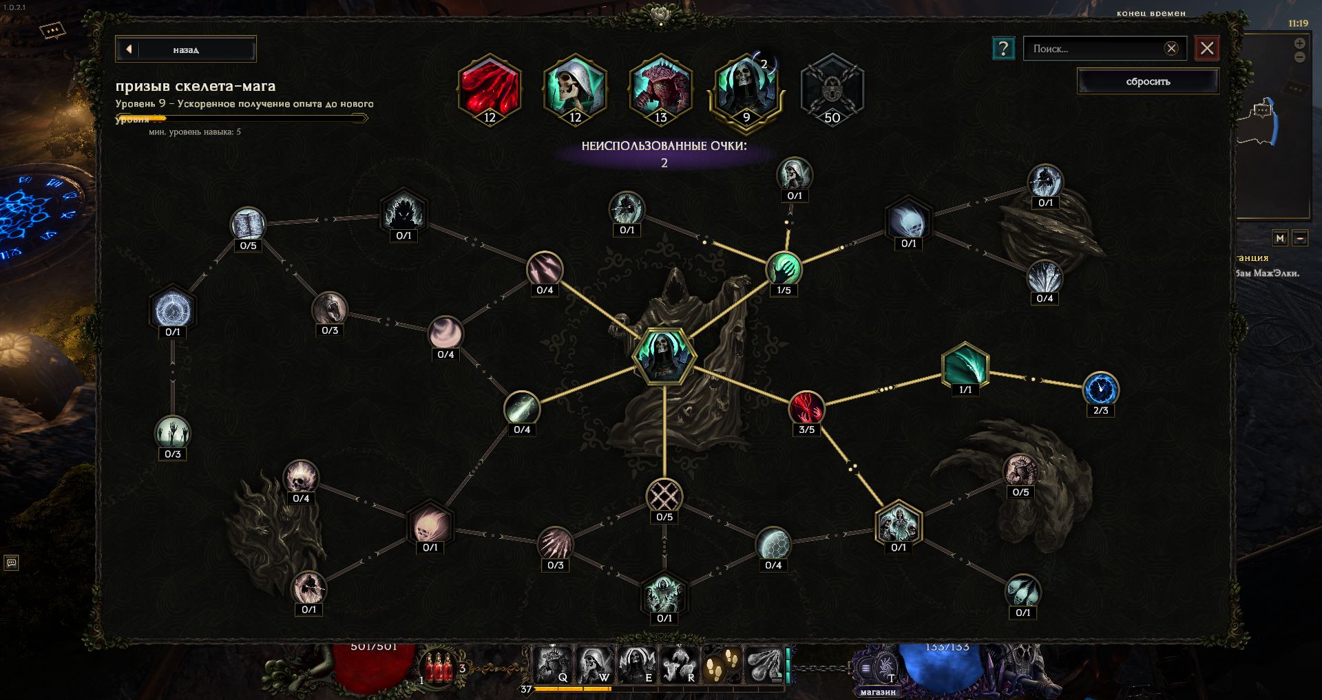Древо одного активного навыка весьма объёмное и может его изменять очень сильно, в зависимости от прокаченных пассивок. Так что два игрока могут по разному прокачивать один и тот же навык, изменяя его параметры, вплоть до типа урона. А сбросить или заменить навык можно прям на ходу.