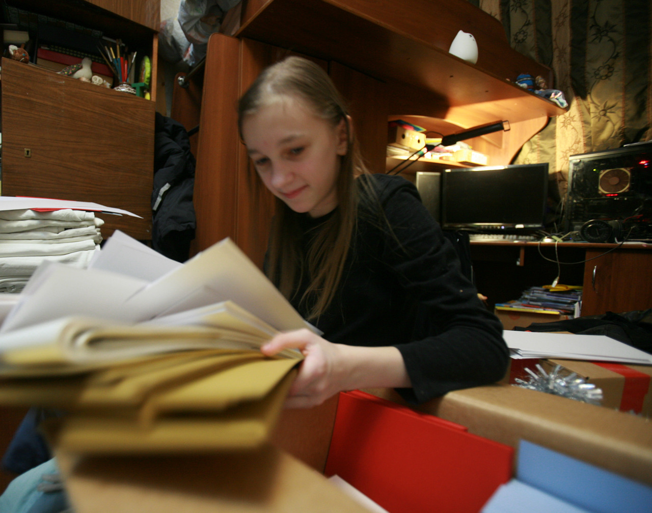 Прошлой ночью ребенка не удалось заманить в кровать - спать не хочу, и точка! и сама все сидит, рисует, рисует. Микельанжело растет! Только скорее зрение потеряет, в таких условиях рисовать... Но тем не менее я достал с антресолей коробку дизайнерских бумаг, всяких разноцветных фактурных - рисовать на таких одно удовольствие! Вот детка и рисует, за уши не оторвать. Смотрите, какое довольное выражение лица.