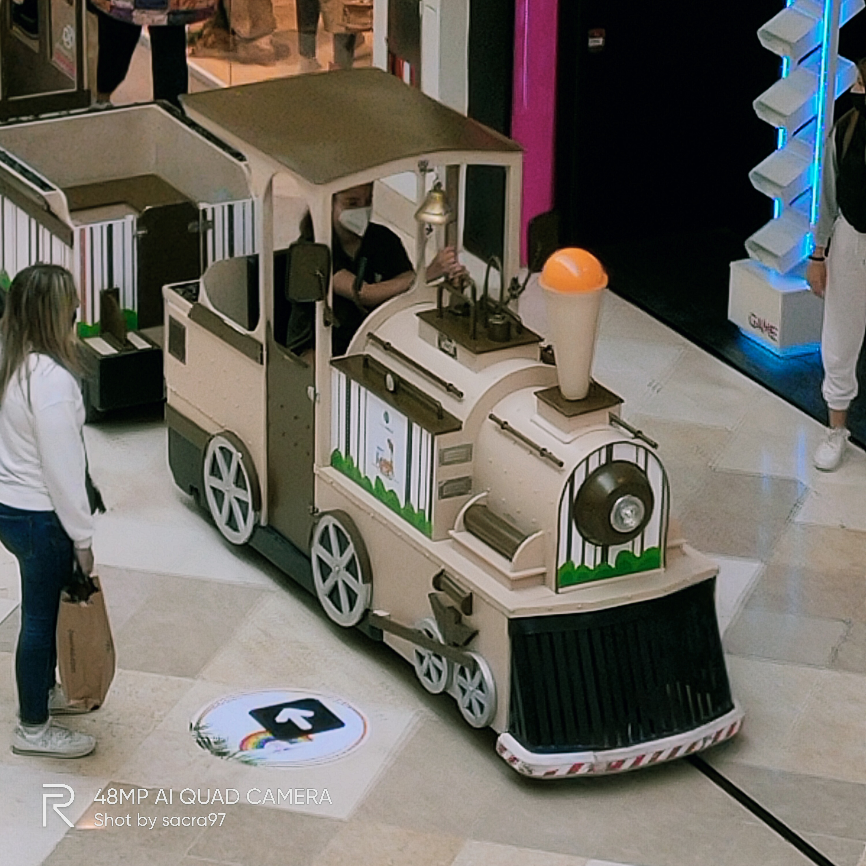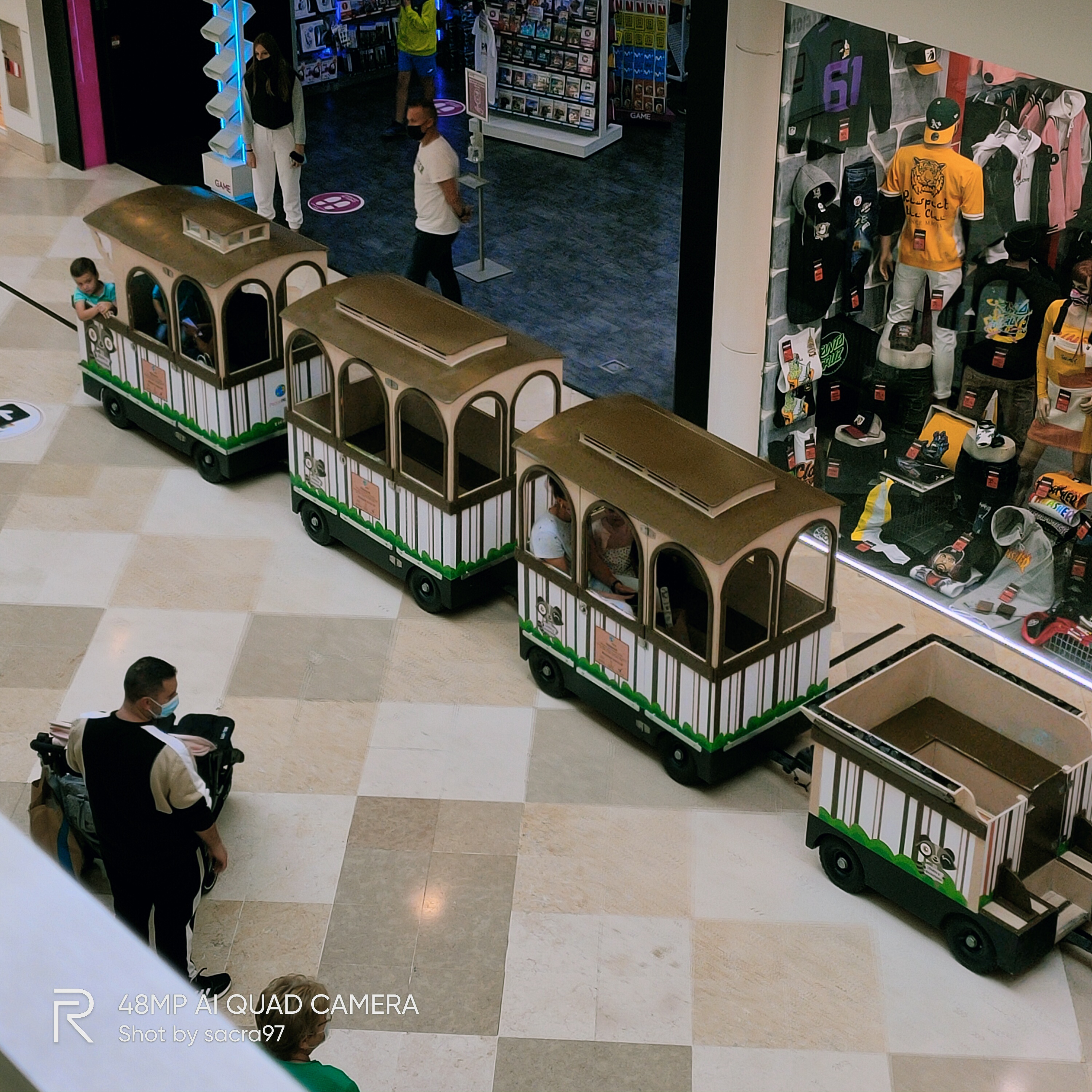 Inside the shopping center a small train to ride the children while the parents do their shopping.Madrid Spain