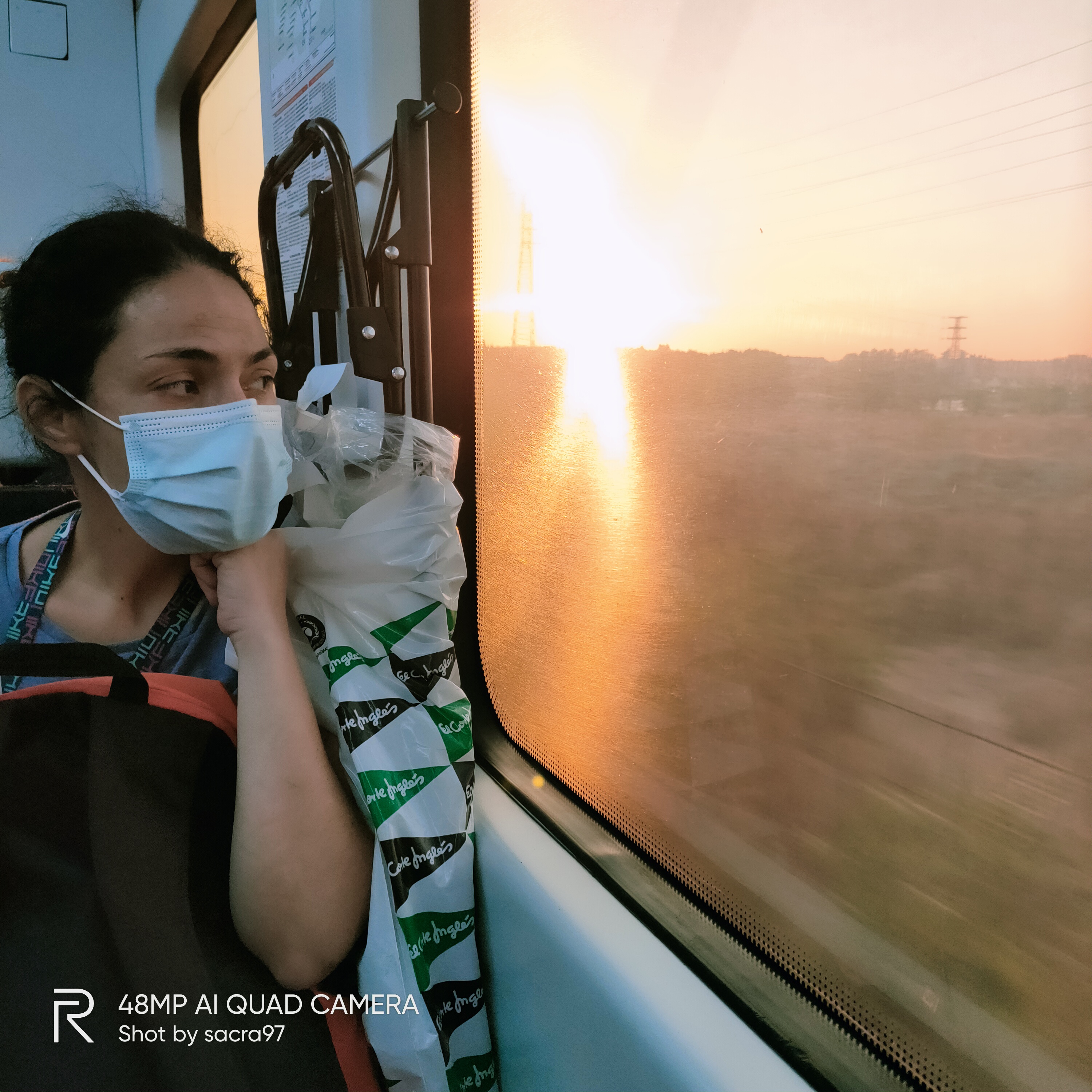Looking through the windows at the exterior movement and the landscape as we move from Madrid to Murcia Spain. To visit relatives in another city, the hometown of my parents and grandparents.