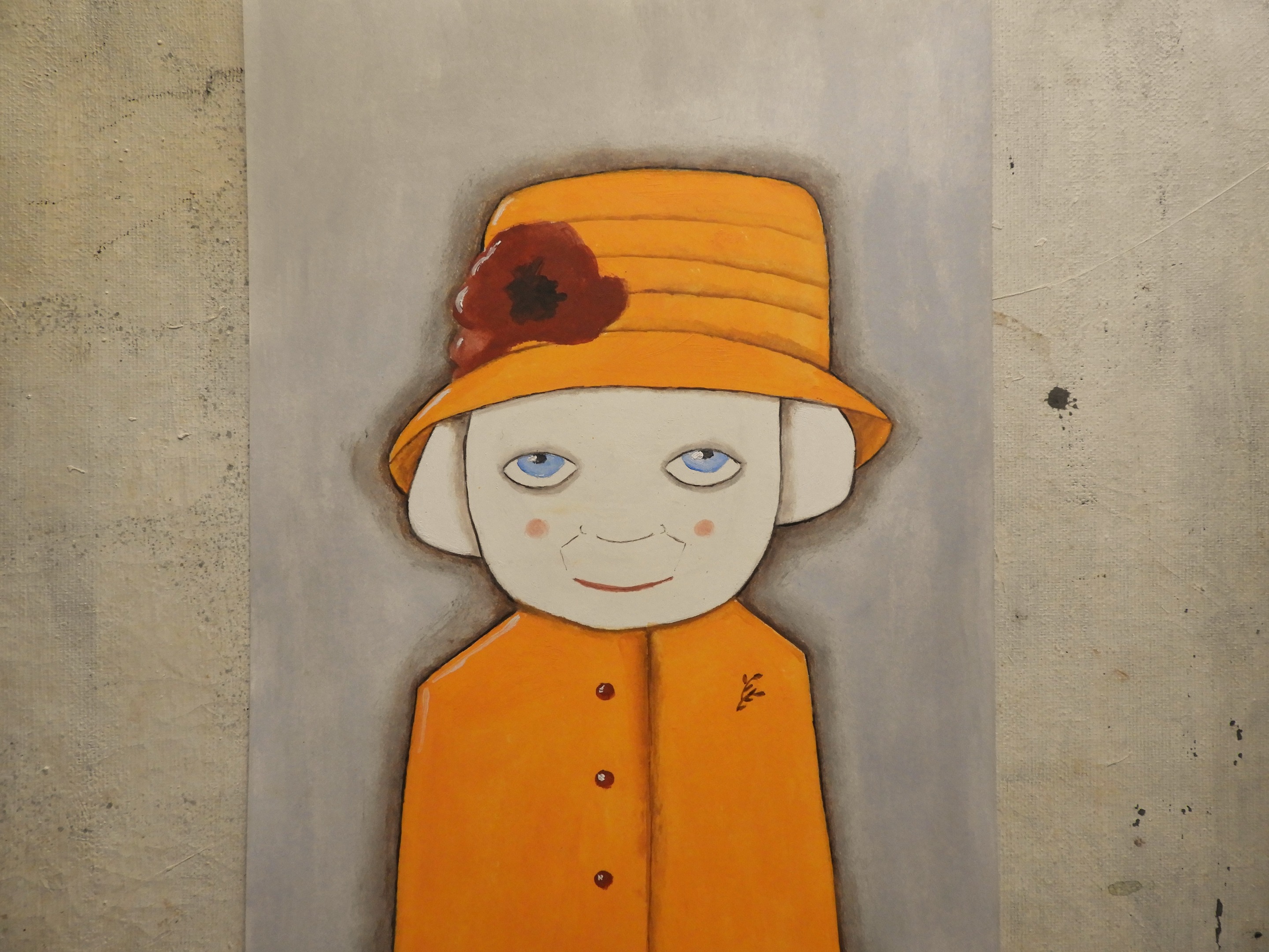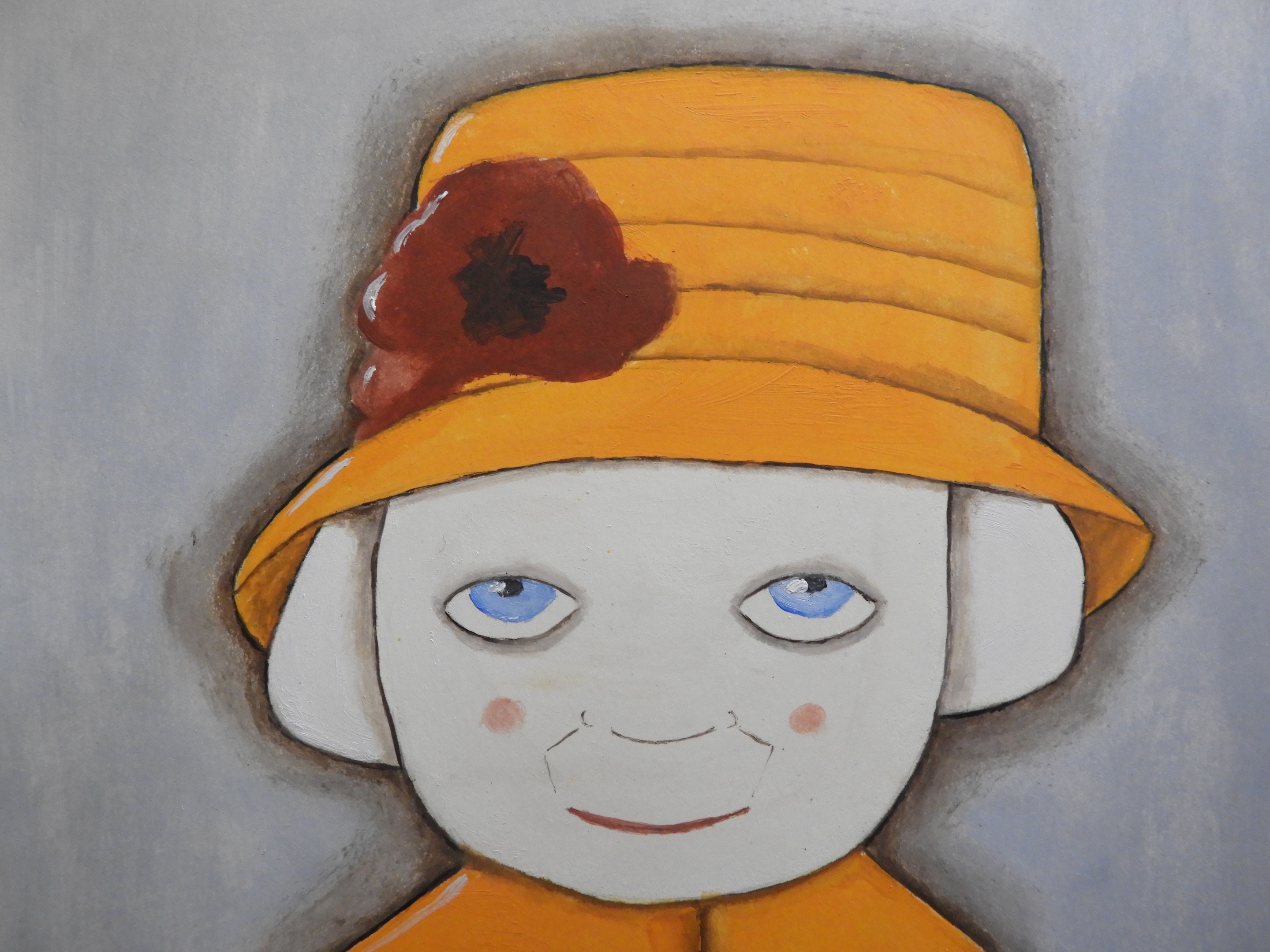 Thinking about the grey sky, I feel the need to share something in brilliant colors and so I'm here to share wit you a painting I made about one month ago: The old Lady in yellow-orange with a large red flower on her hat.