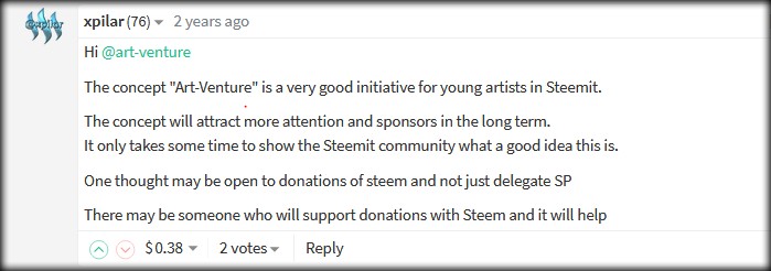 If you are from beginning on Steem you know that there was a project @fundation that was giving delegation to new projects as well as continuous upvotes for those. When we applied for support of Art and asked for delegation it was then rejected.