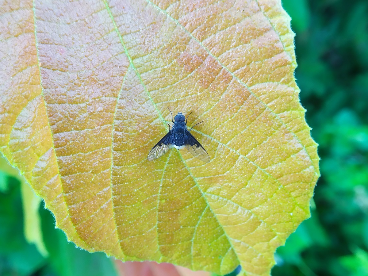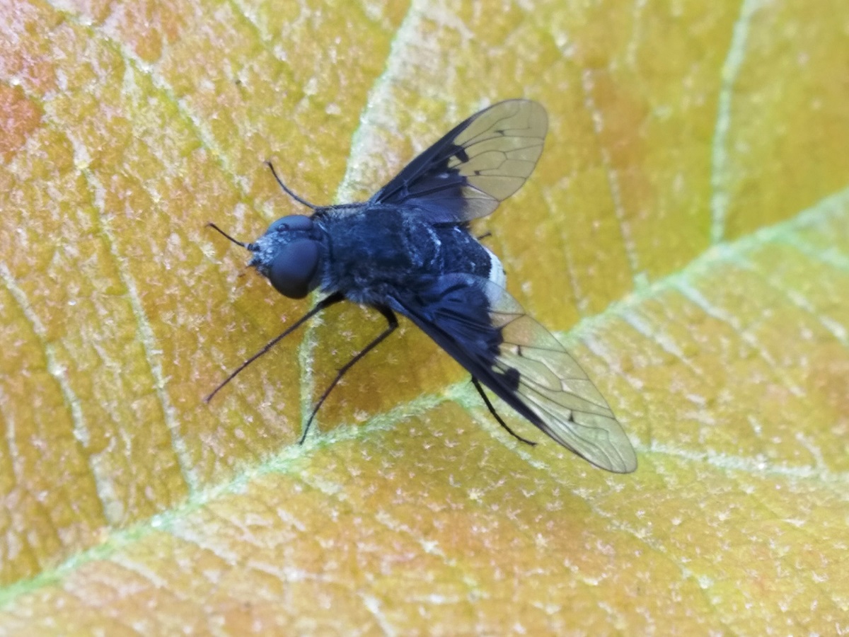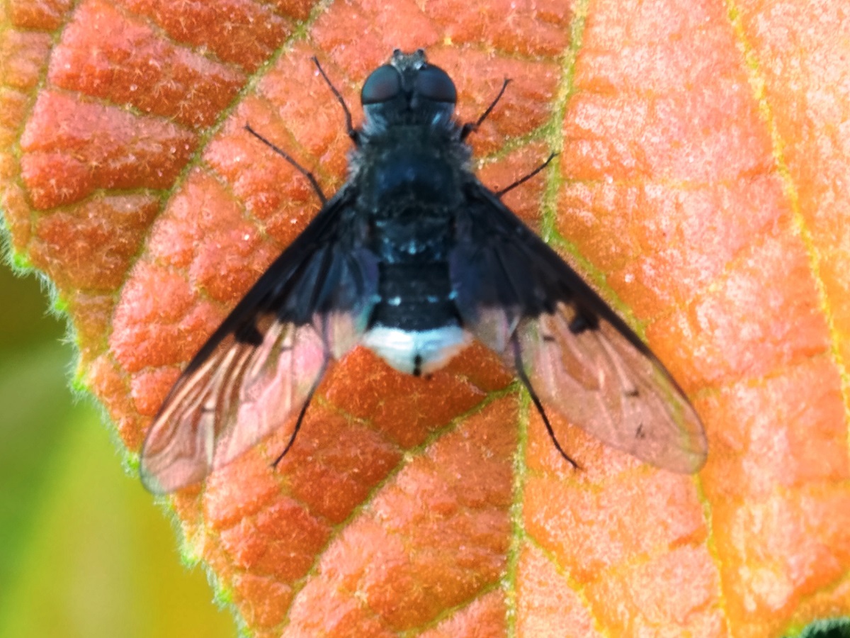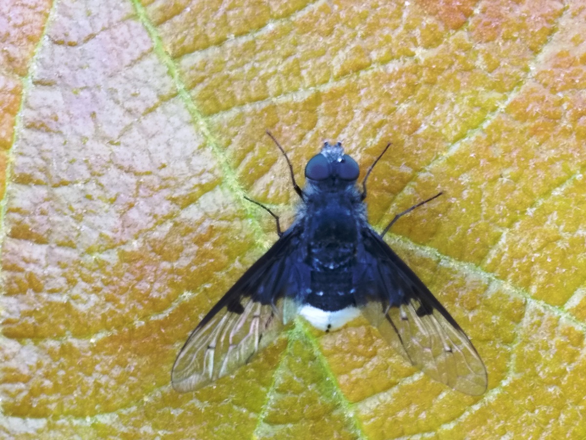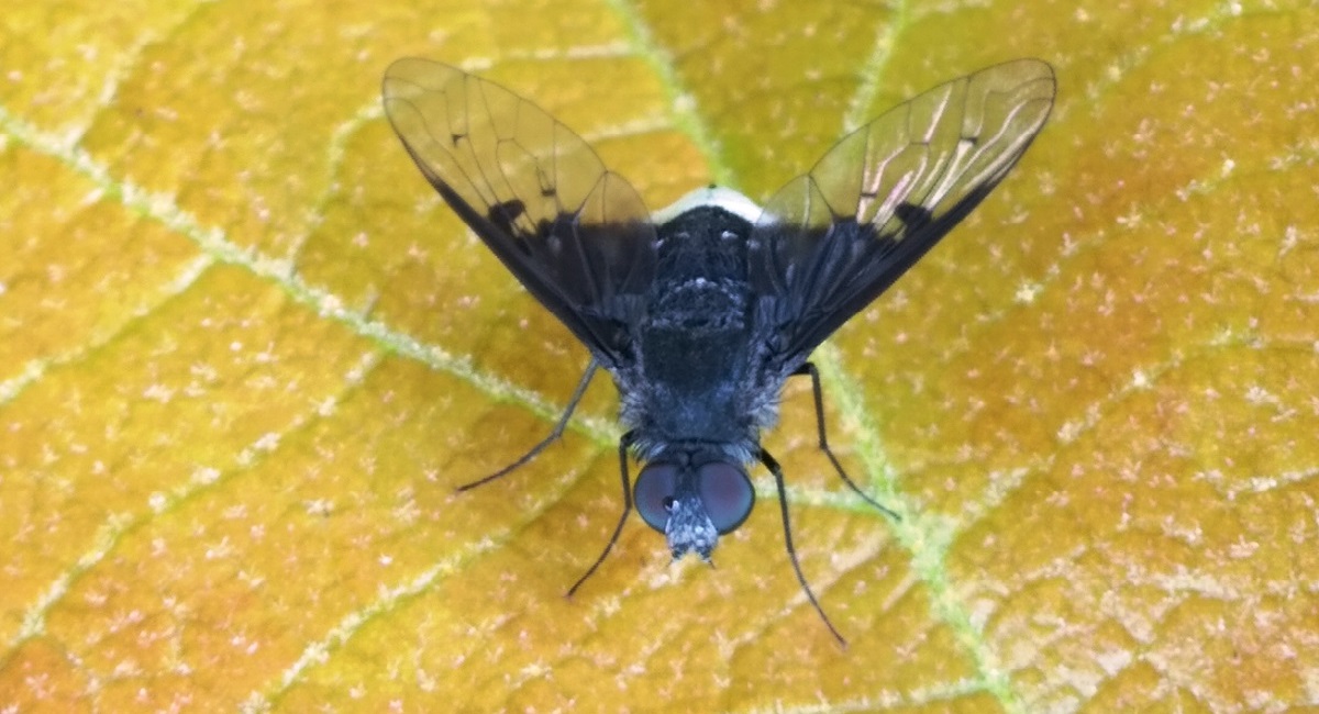the characteristic color of this fly is black, by having a wide and large me, this type of fly is able to fly in a high tree position.