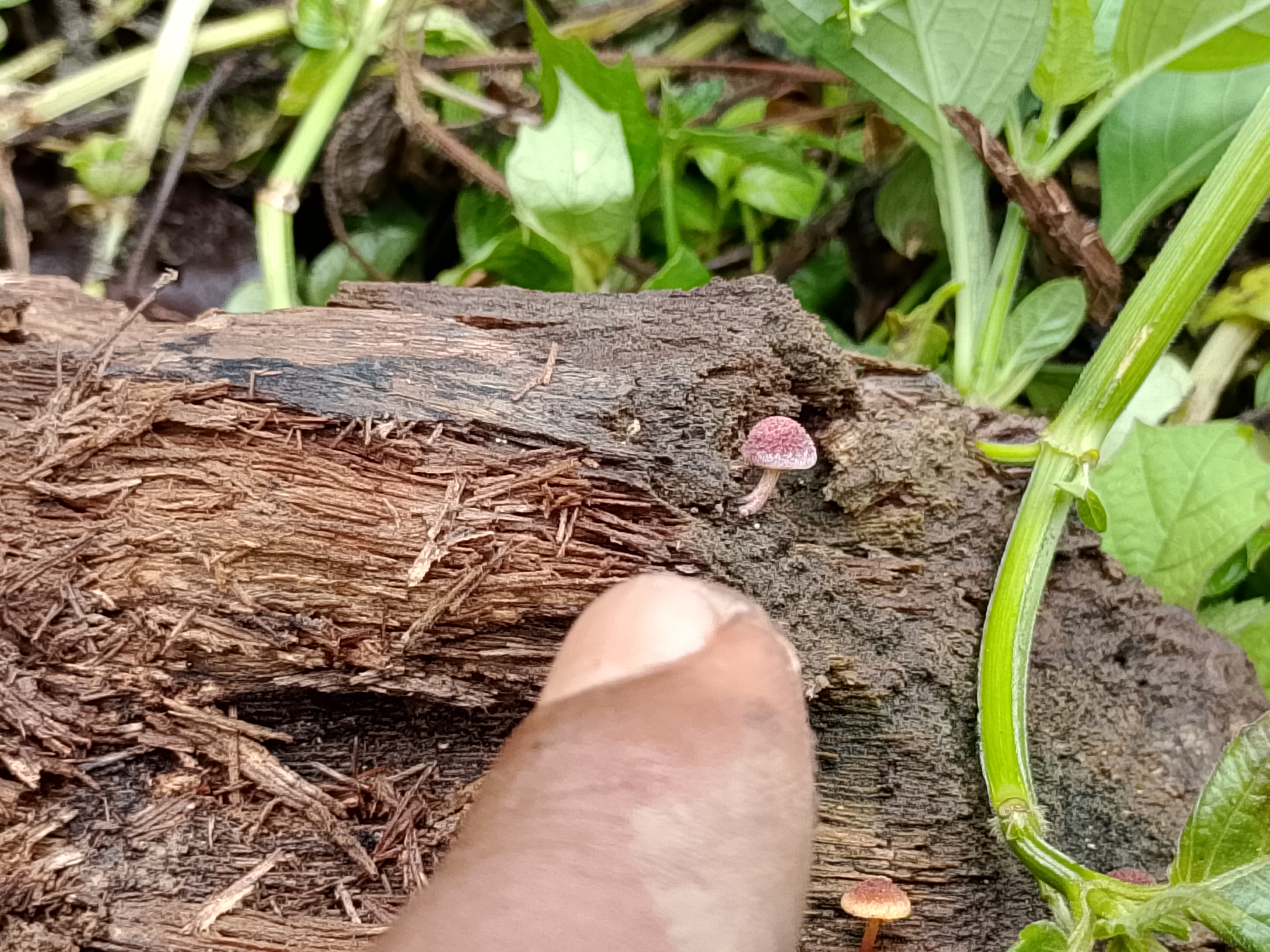 and below, the original smallness of this type of mushroom, as in the picture, I pointed it using my index finger, let's look at the picture below: