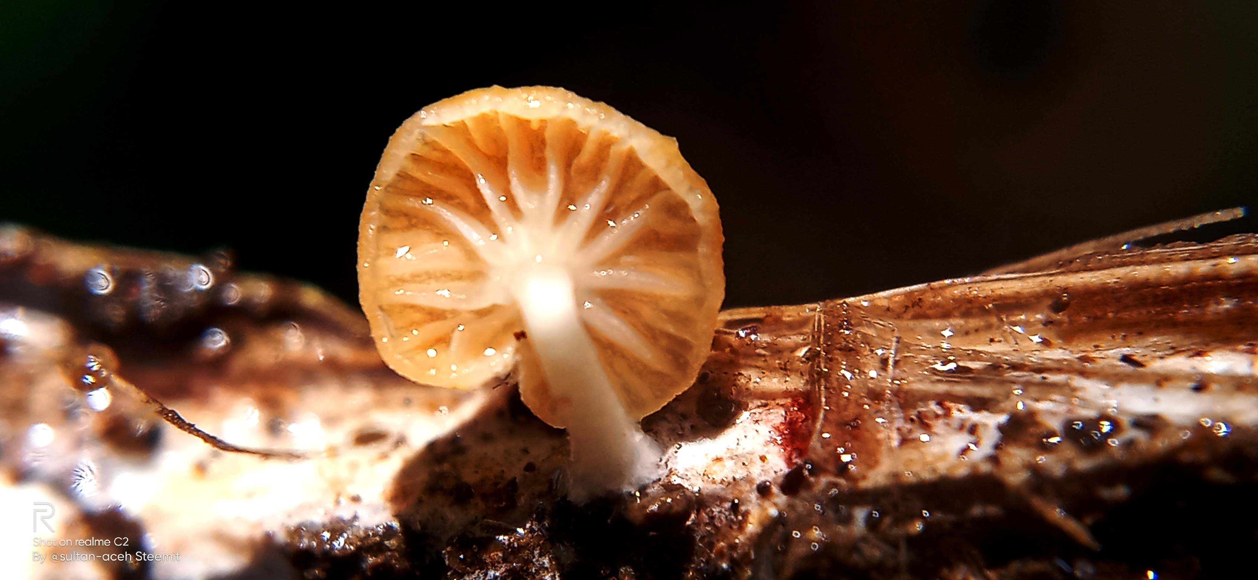 The fungus Roridomyces Roridus. This fungus basically doesn't get enough water in its growth, so it looks like some are drying up, which is visible on the top, however, because this type of mushroom grows in a different place, some parts of this type of mushroom look wet, due to drizzling rain on the part. on this mushroom.