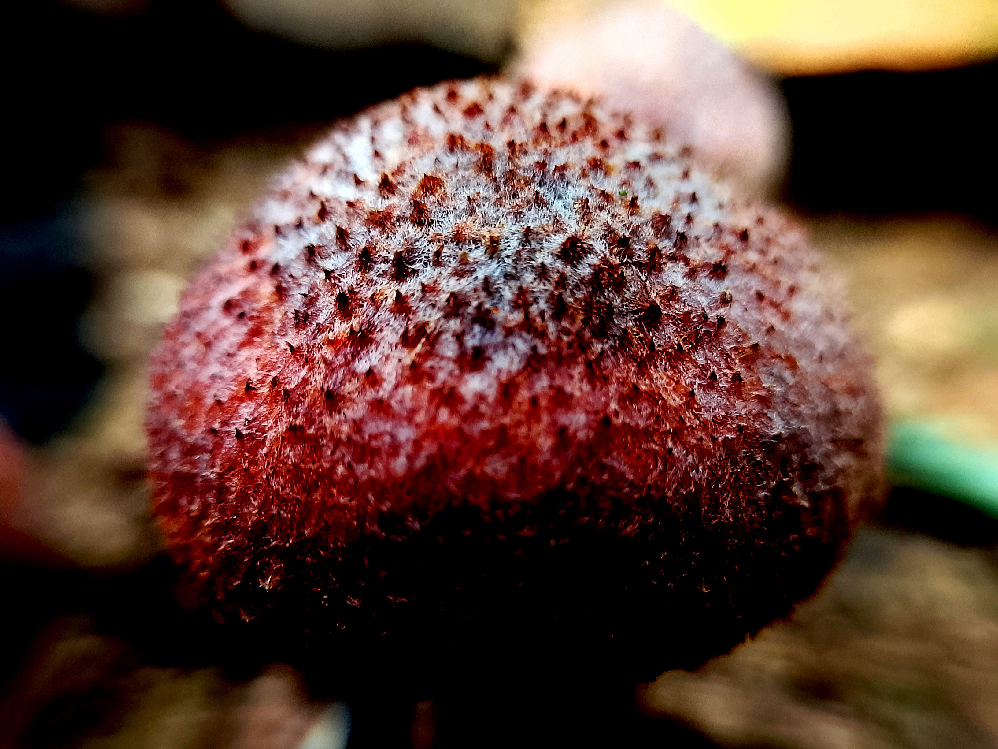 • Fine spots on the top of the mushroom cap;