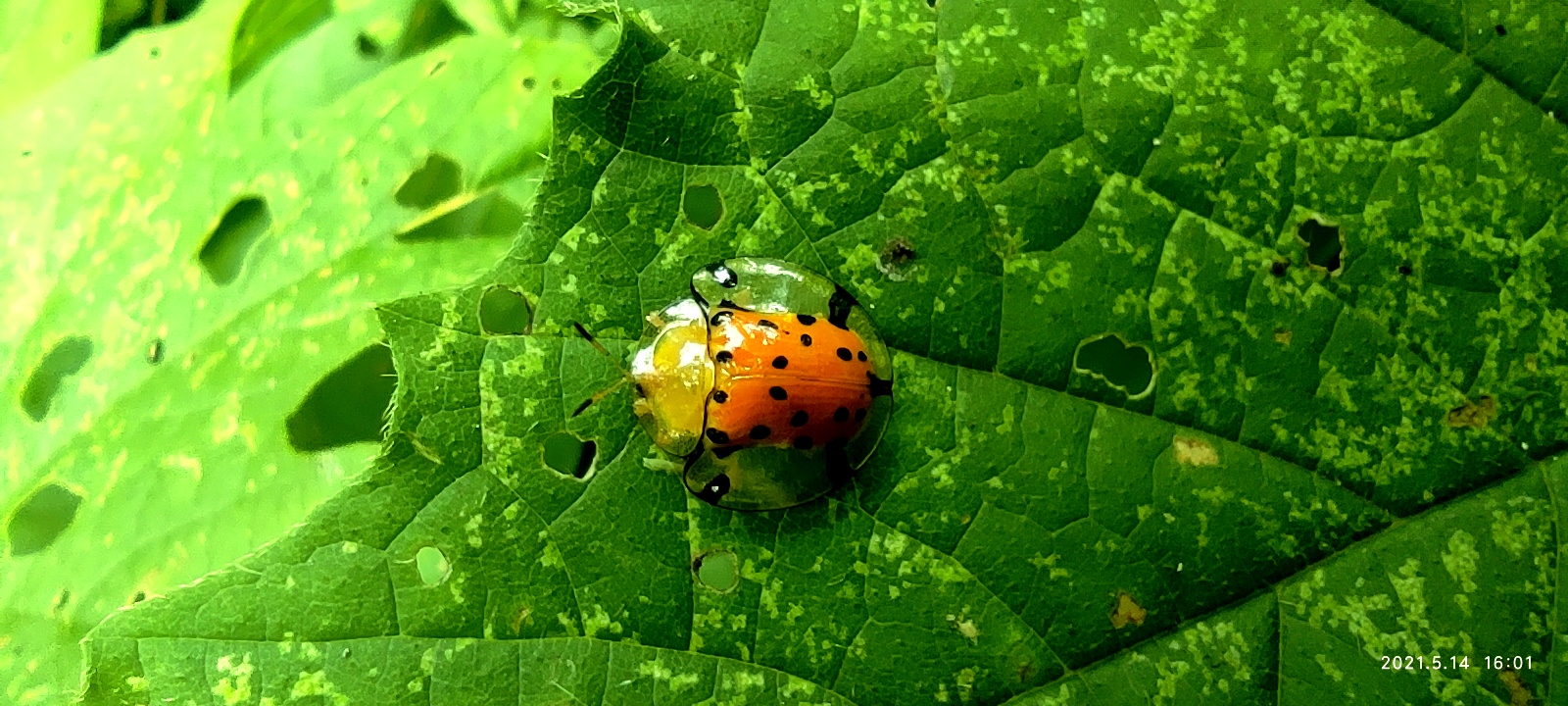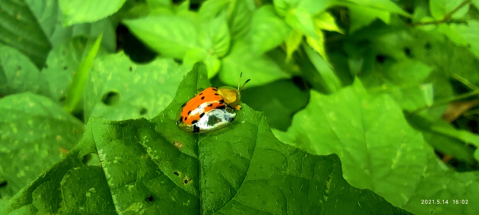 Saya belum pernah melihat kumbang mungil ini di alam nyata. Yang paling unik dari kumbang ini adalah bagian tubuh nya yang putih seperti lendir pada kedua sisi nya, itu yang bikin dia unik dan cantik, selain balutan warna dan motif indah di tubuhnya.