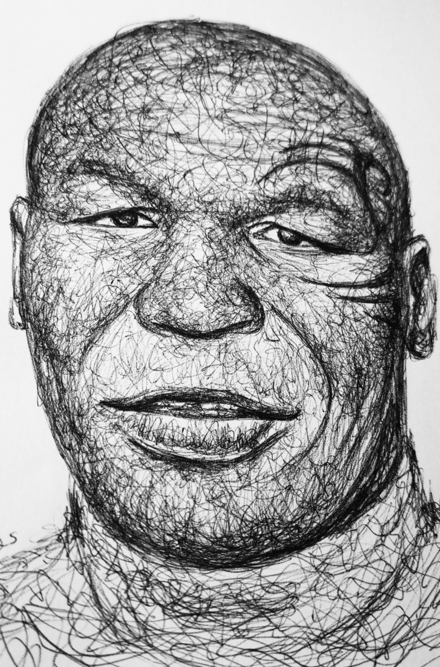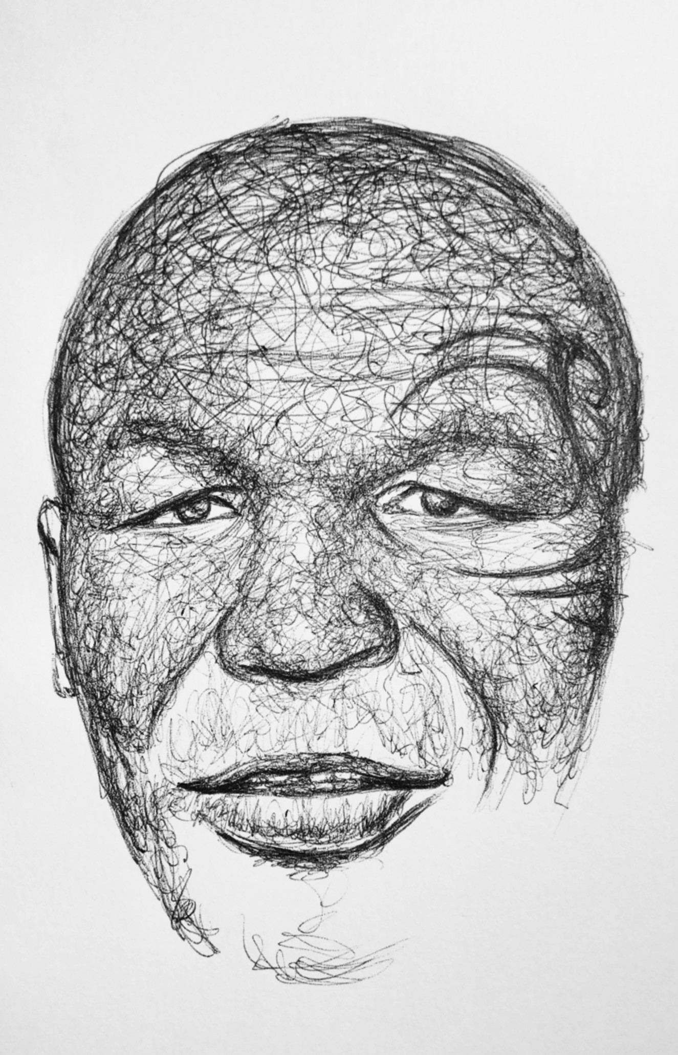Hello Friends. I present to you all my new scribble portrait of Mike Tyson, the legendary American boxer. I stumbled on a new detailed photograph of him today and decided to create a new piece of him. Mike Tyson's face is one of my favorite face to draw because of the beautiful tattoo on his face. I'm also a big fan of tattoos and body art and I appreciate them when I see them on others. I created this new drawing of him with ink scribbles and showed the steps below.