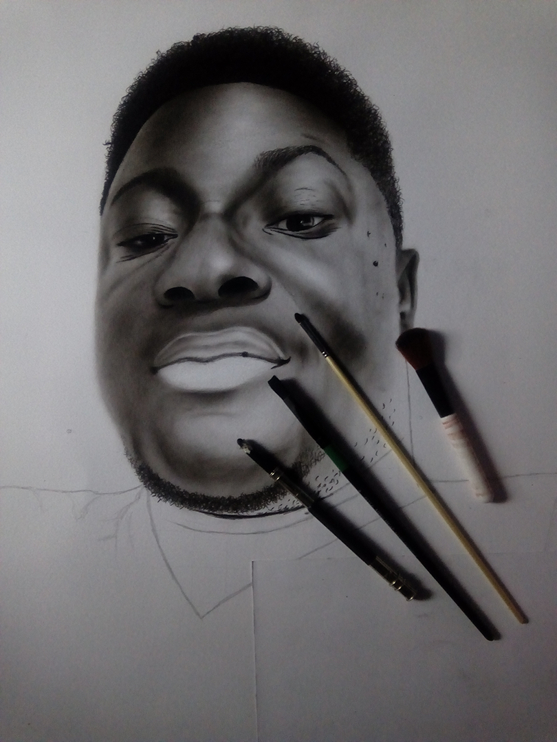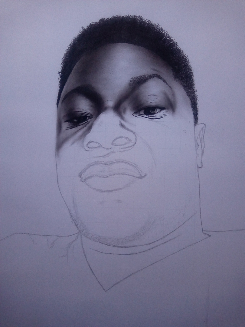 I drew my grid lines and made my sketch then started shading it gradually. Sometimes I usually start some of my portraits from the hair. This is to helps me work downward and from left to right before moving down to the clothing. I do this to avoid smudging the part I may have already worked on. just as the case of this one. I really took my time to include everything in detail. Making sure nothing was left out since I want him to really appreciate a good work. And I know myself. I know I'm always committed to excellence regardless of who my client may be.