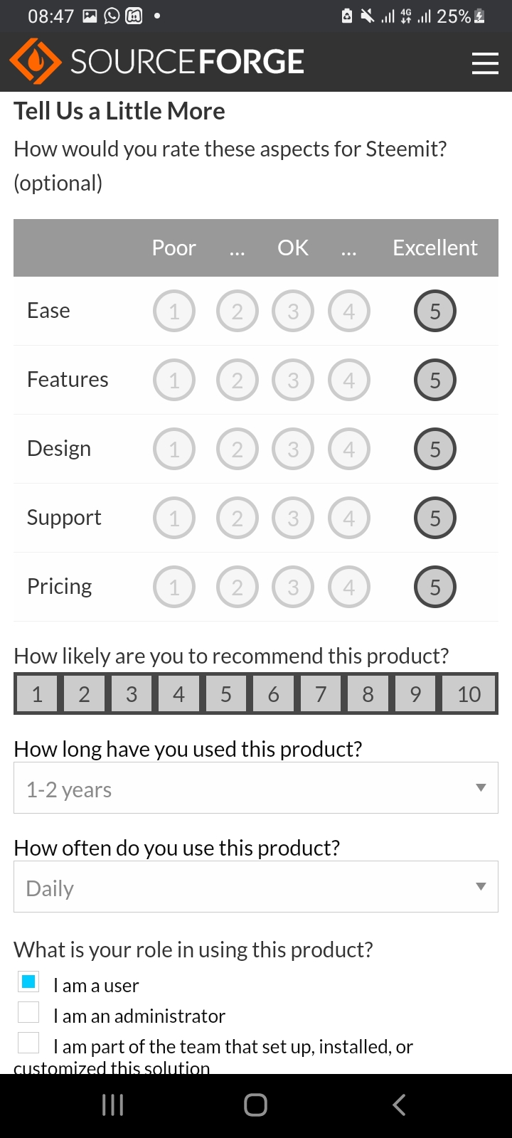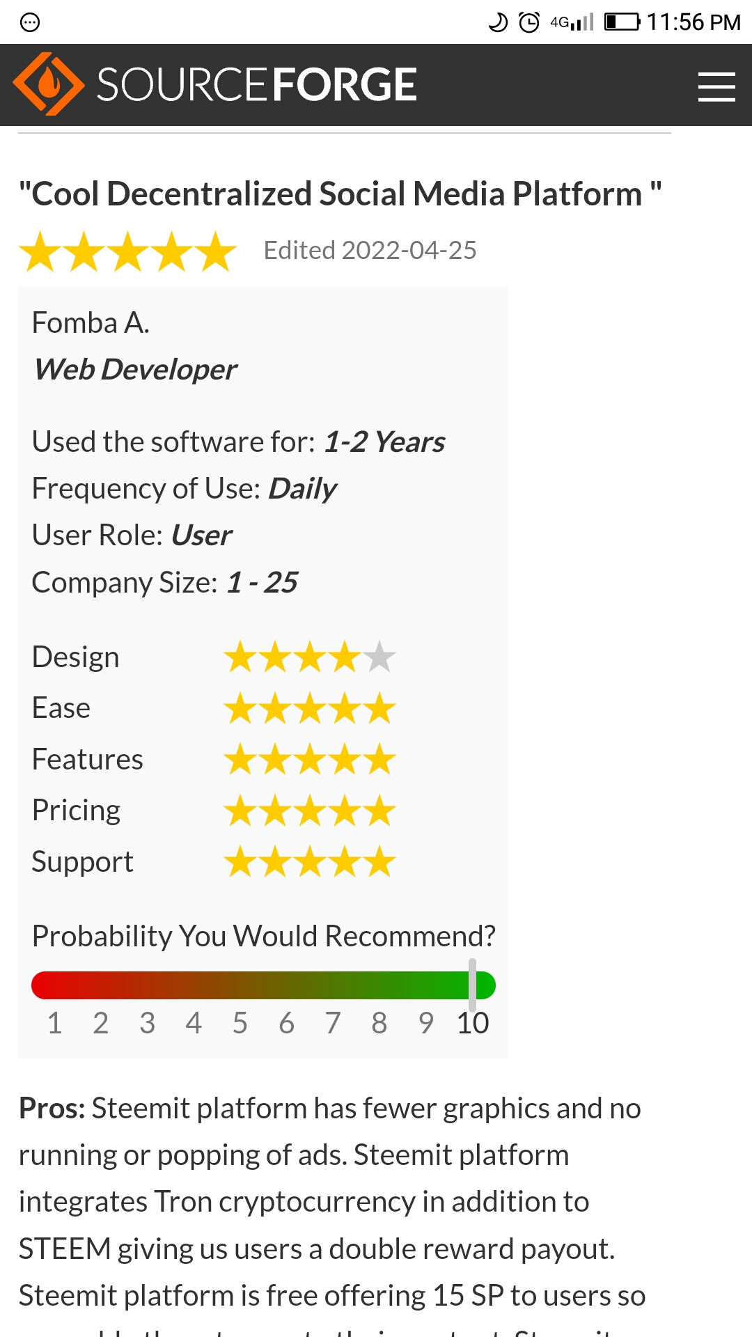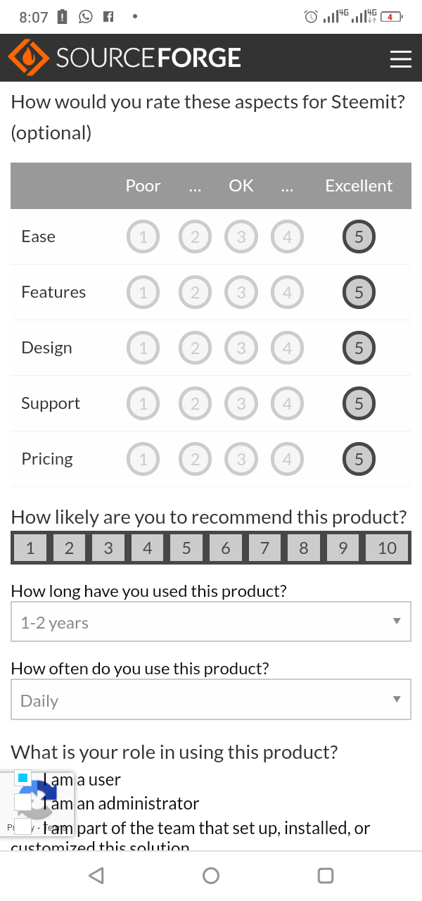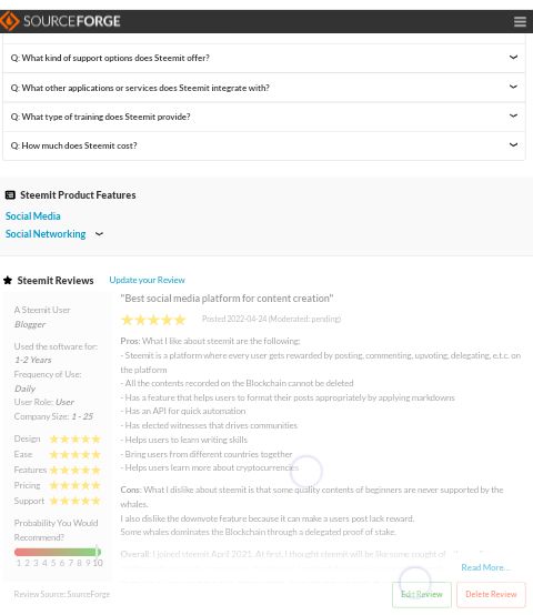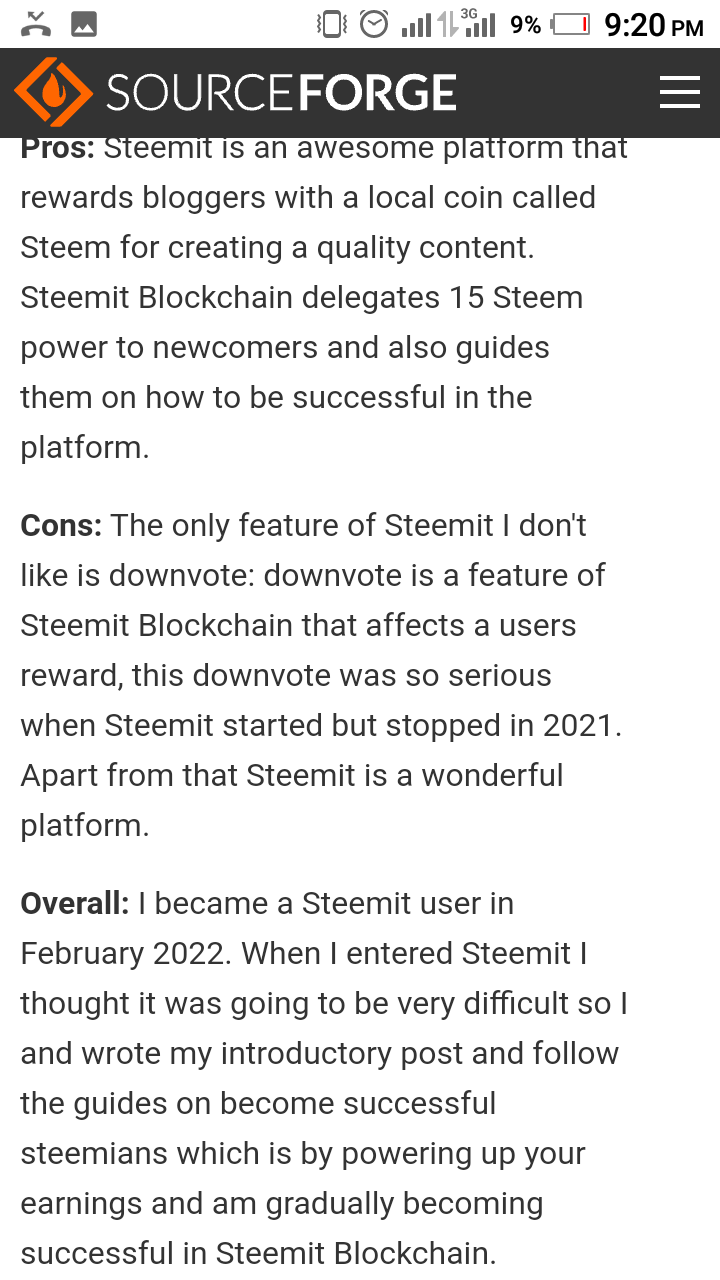 In the past couple of days, both @offgridlife and @denmarkguy have highlighted SourceForge's "Best Decentralized Social Media Networks" and at the time of writing, Steemit has 4 Reviewsand an overall rating of 3.5 / 5.