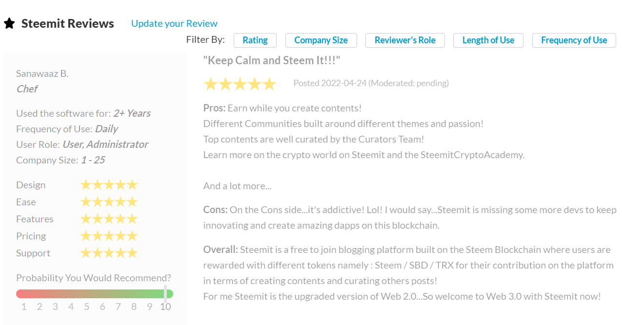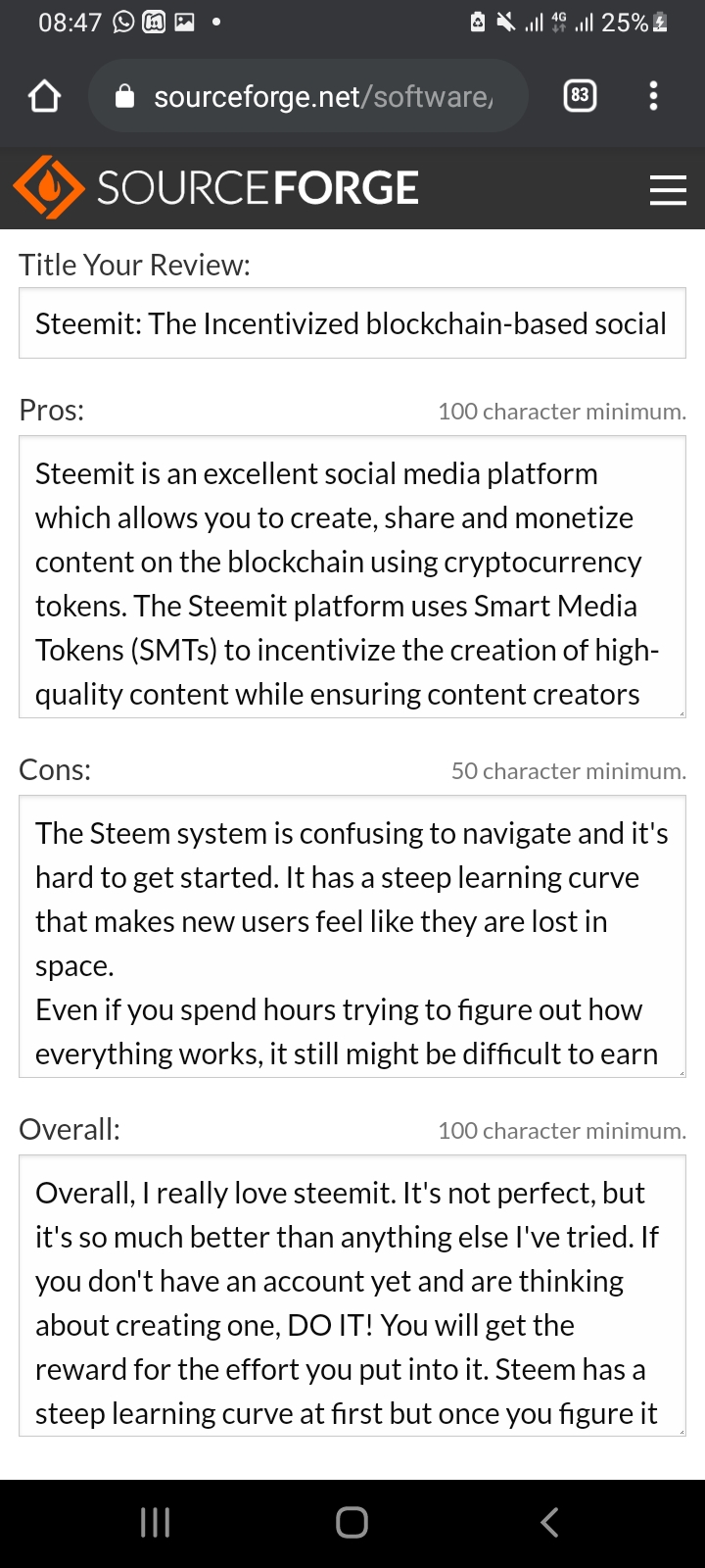To enter, you simply need to visit Steemit's page on SourceForge and write an incredibly positive and honest review of why you love steemit.com. Your review must be in English so please use a suitable translator if you are not fluent.