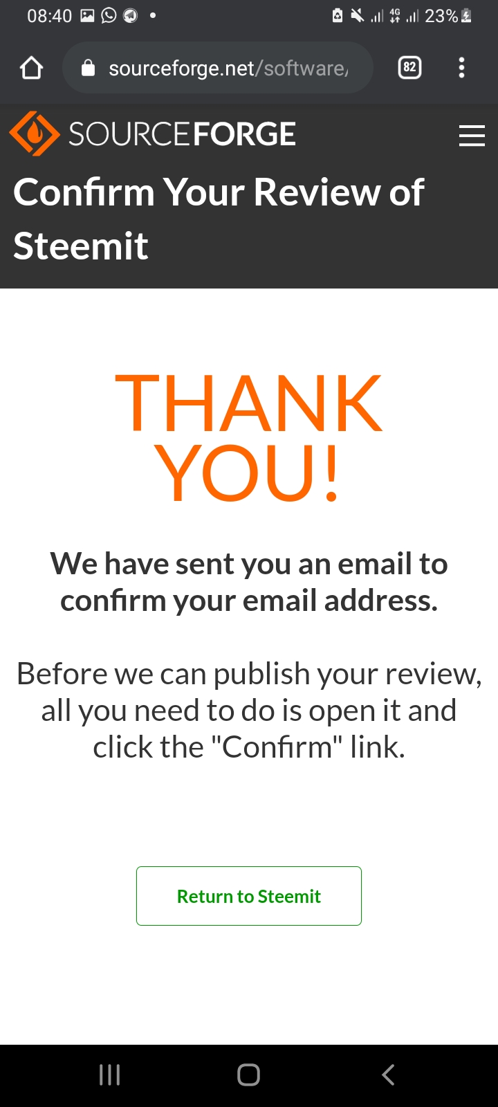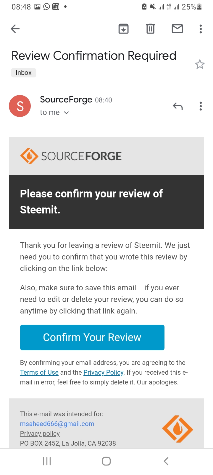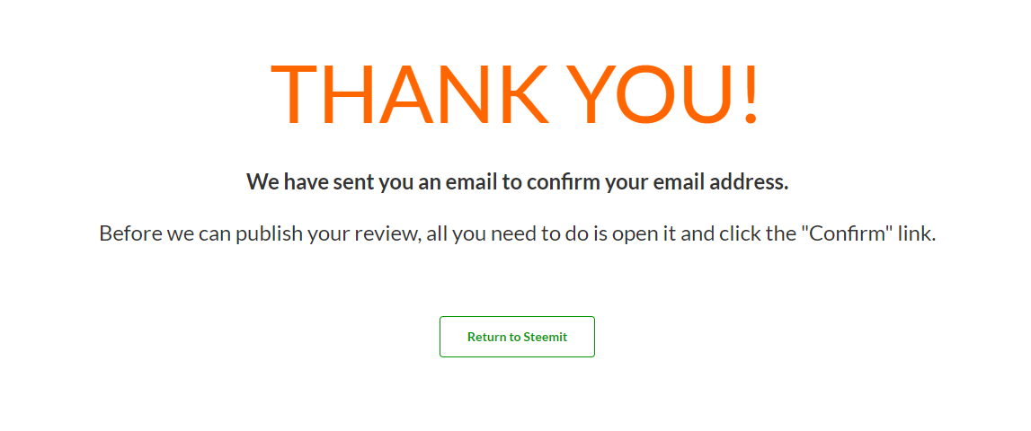 (4) You're not quite done yet. Before your review goes live, you need to check your email and "Confirm Your Review".