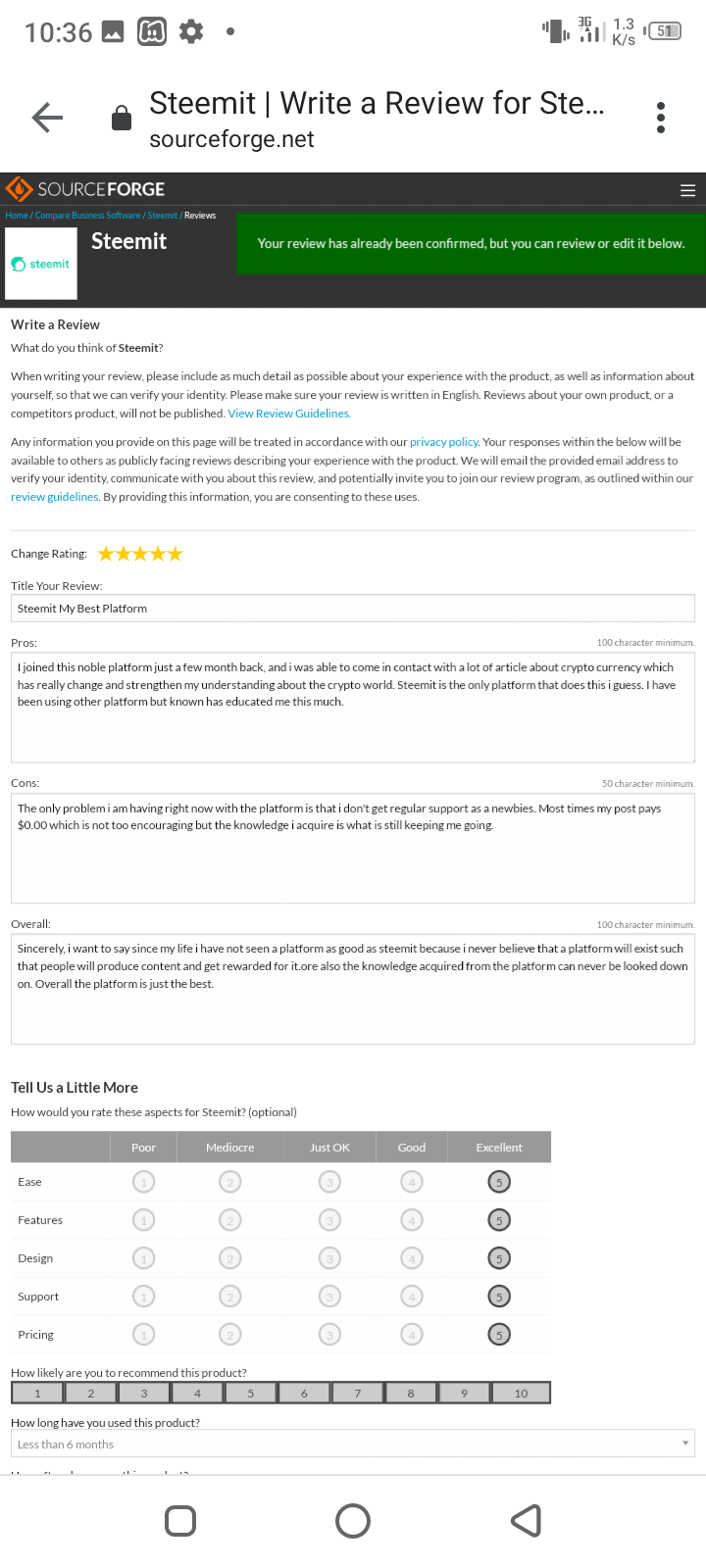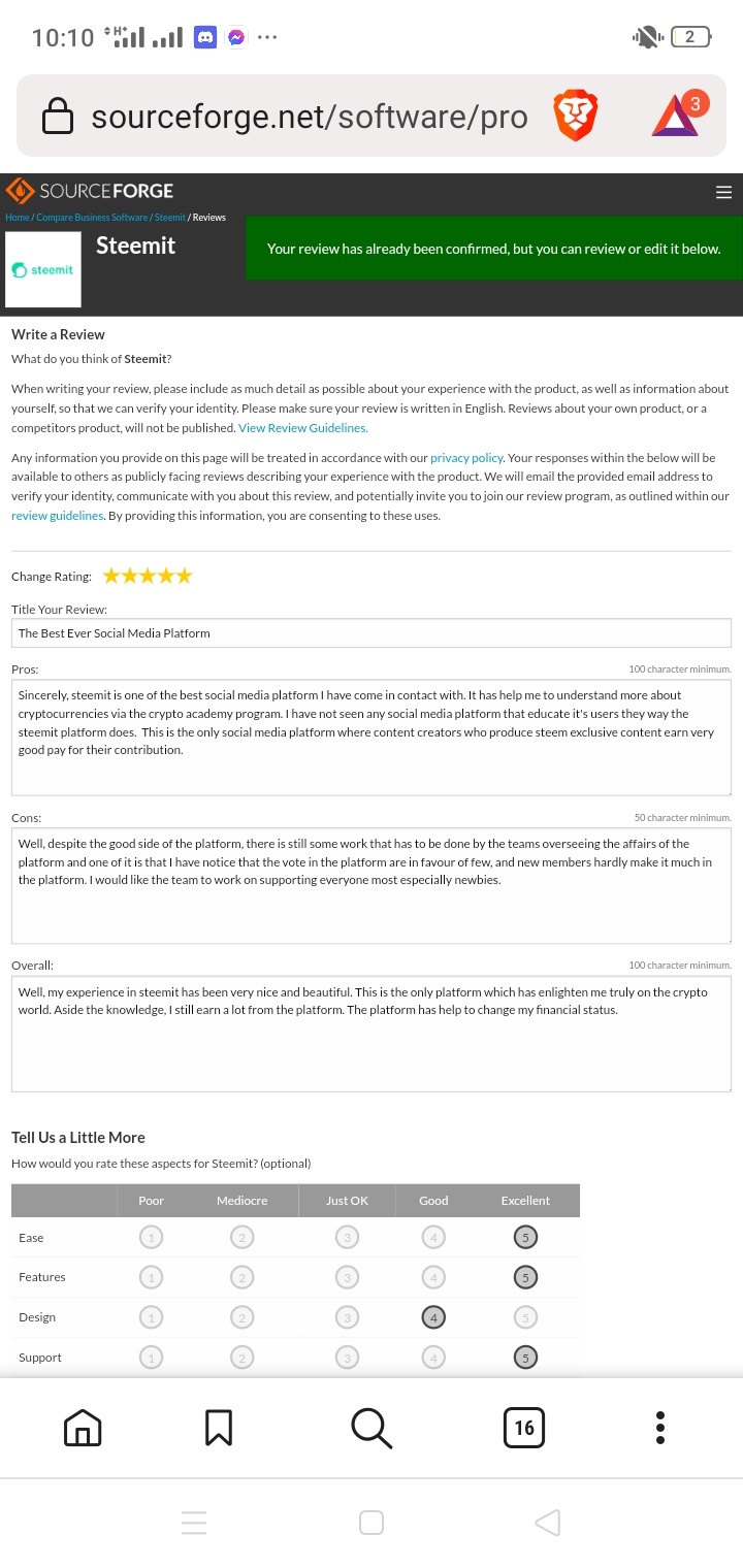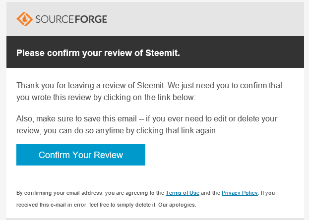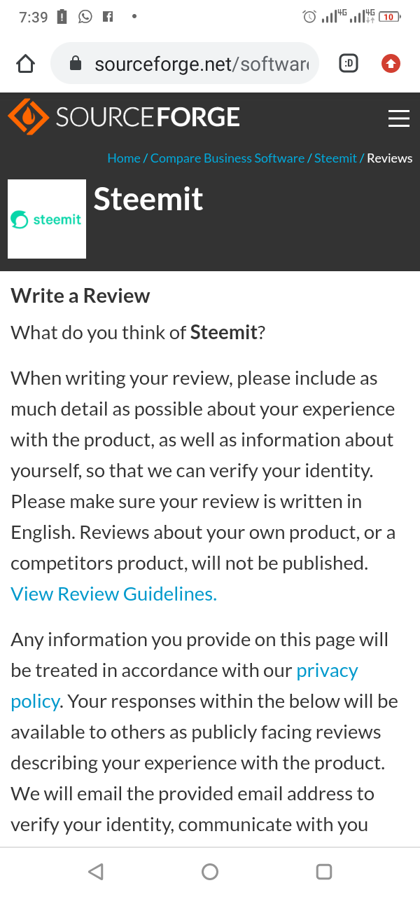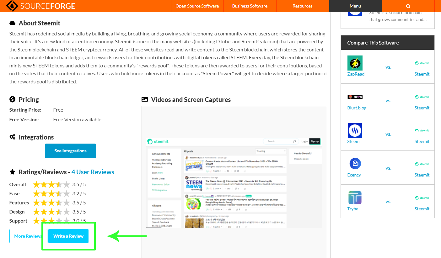 (1) Visit https://sourceforge.net/software/product/Steemit/#reviews and click on the "Write a Review" button in the "Ratings / Reviews" Section.