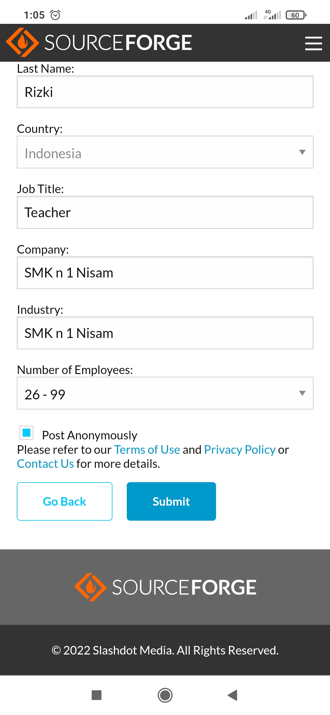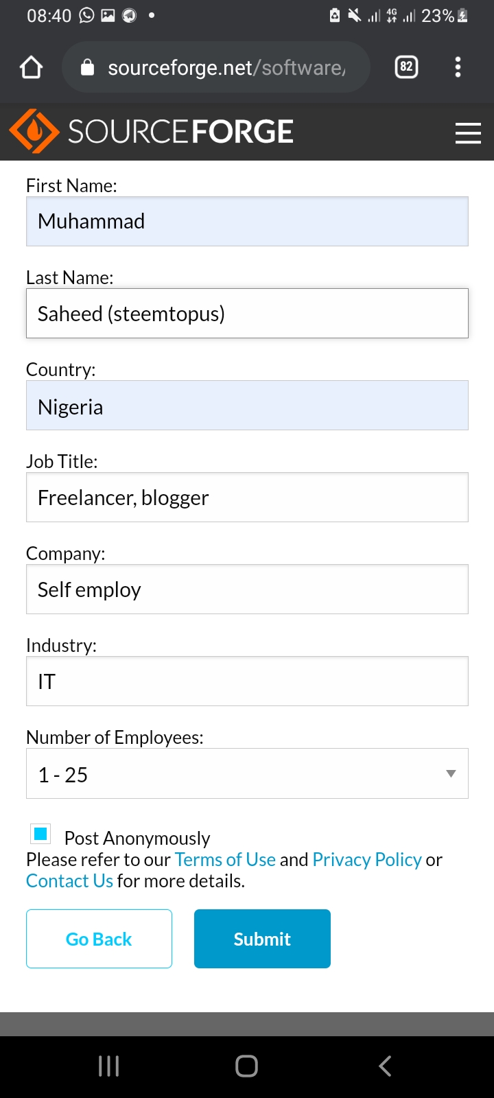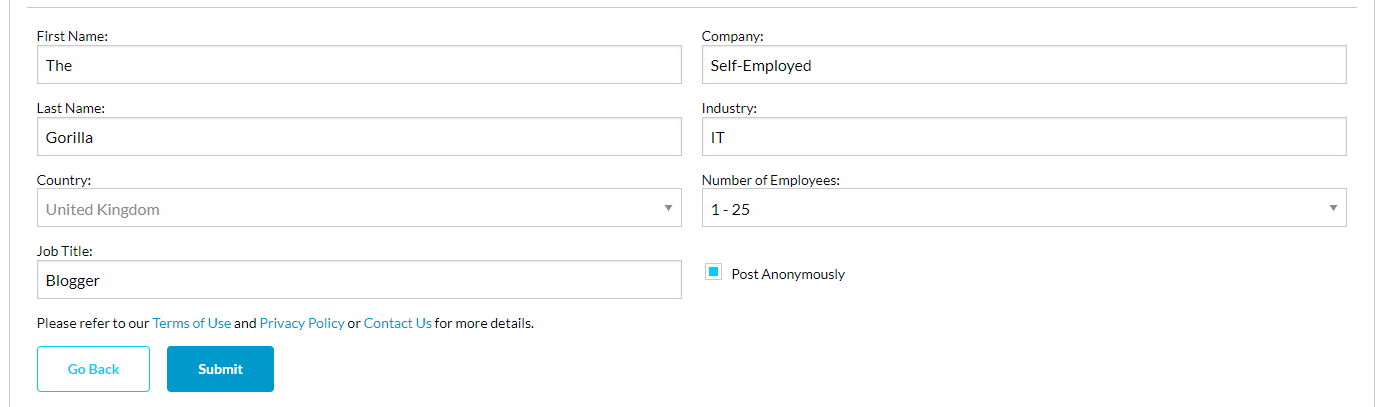 (3) Some Personal Information - I'm not a fan of entering personal information but I can cope with a name. Your first name and first letter of your surname will be displayed on screen unless you choose to post anonymously, which I have opted to do.