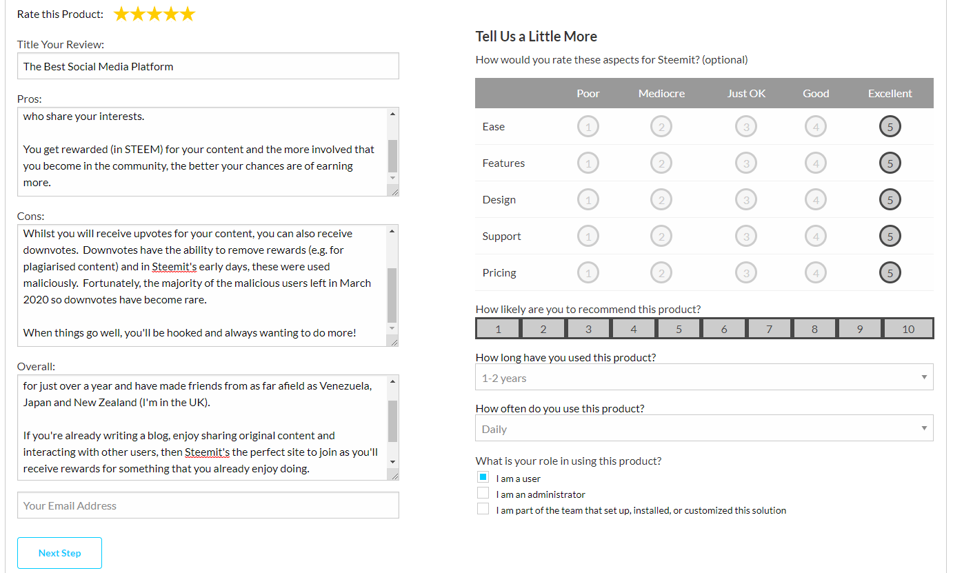 (2) Enter the details of your review in the fields provided - Please be honest but remember that you're not going to win any prizes for destroying Steemit's reputation!