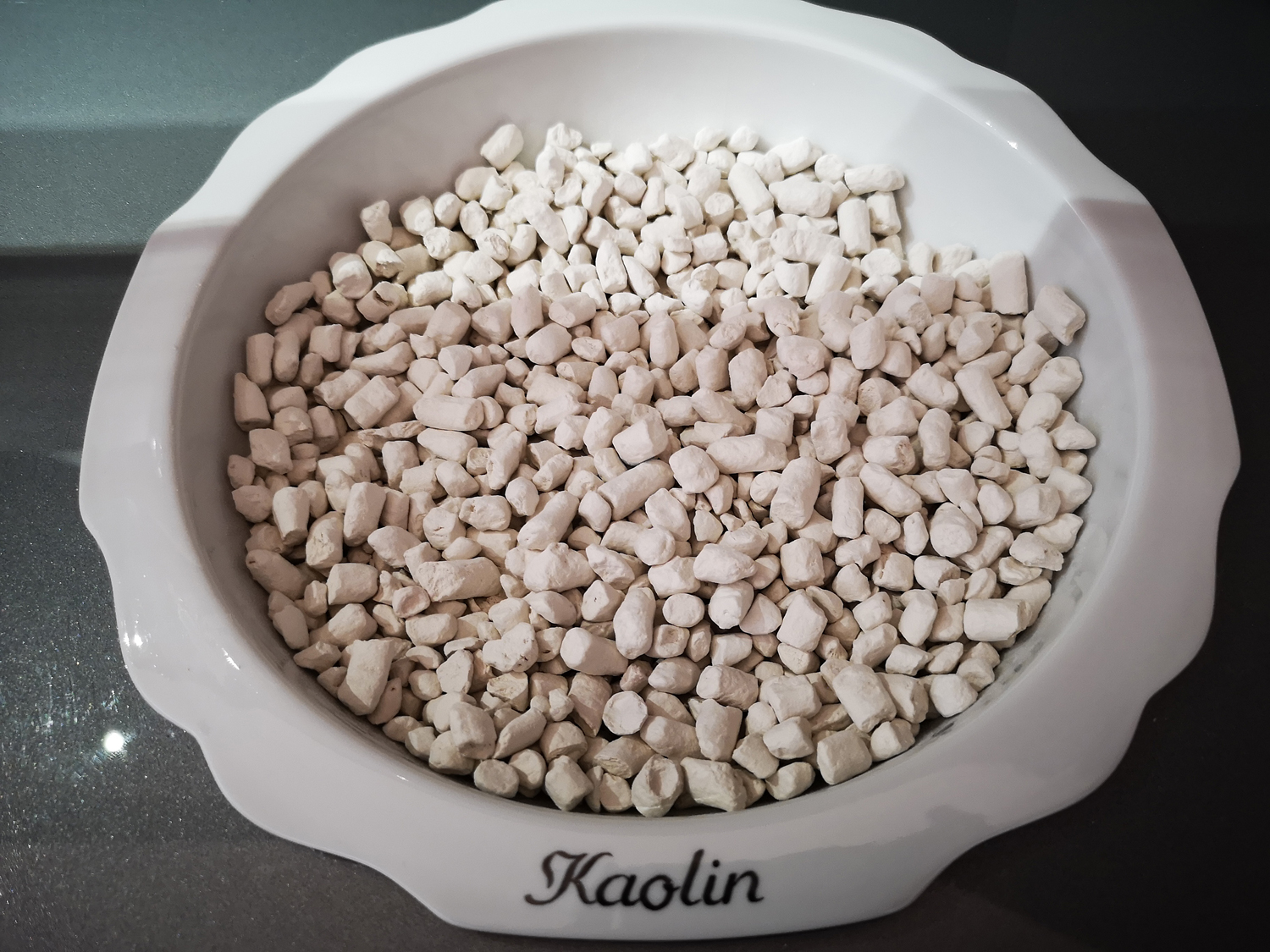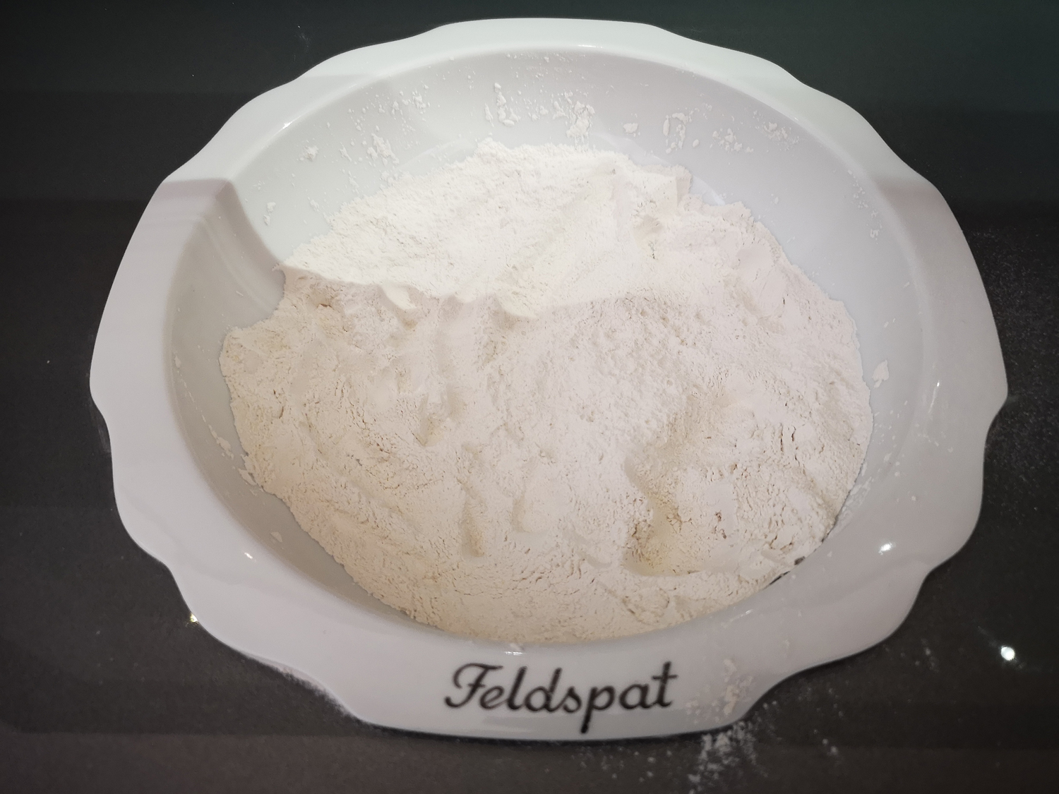 Echtes Porzellan benötigt für die Herstellung 50% der weißen Tonerde Kaolin, 25% Quarz und 25% Feldspat.