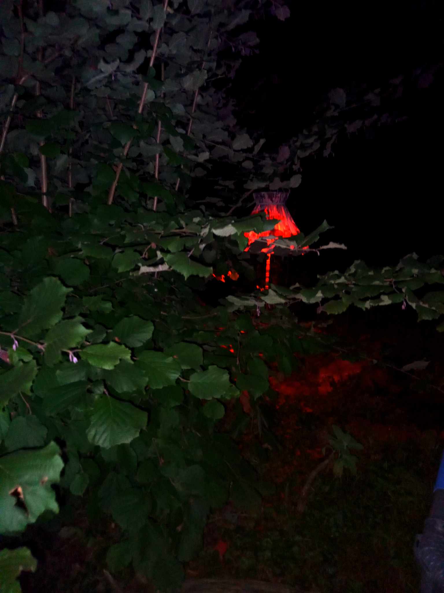 My hosts were kind enough to set up a floor lamp by the pond! Yes, a very old-fashioned floor lamp with a fabric lampshade and tassels - you probably know it from your grandparents in a similar form... ;-)) Combined with a red light bulb, it created a very special, picturesque atmosphere, which of course I could only capture inadequately photographically…