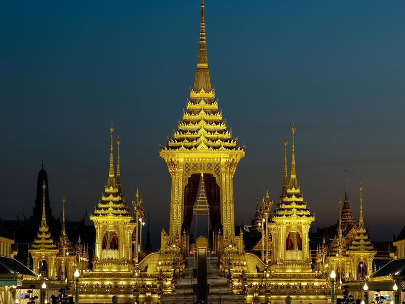 The funeral ceremonial dedicated to the late King of Thailand Bhumibol Adulyadej which is due to start on Wednesday is undoubtedly one of the most elaborate that has ever been seen. After 12 months of mourning, everything could be prepared in the smallest details to ensure in the best conditions the departure of the soul of this sovereign venerated by his people to the hereafter. It must be said that this ceremony adjusted to the millimeter must underline the almost divine status of the kings of this country held by an ultraroyalist junta. And at the center of these royal funerals is this incredible golden crematorium. Real palace with nine towers, it cost no less than 30 million dollars and mobilized for its design myriads of architects, designers and craftsmen.