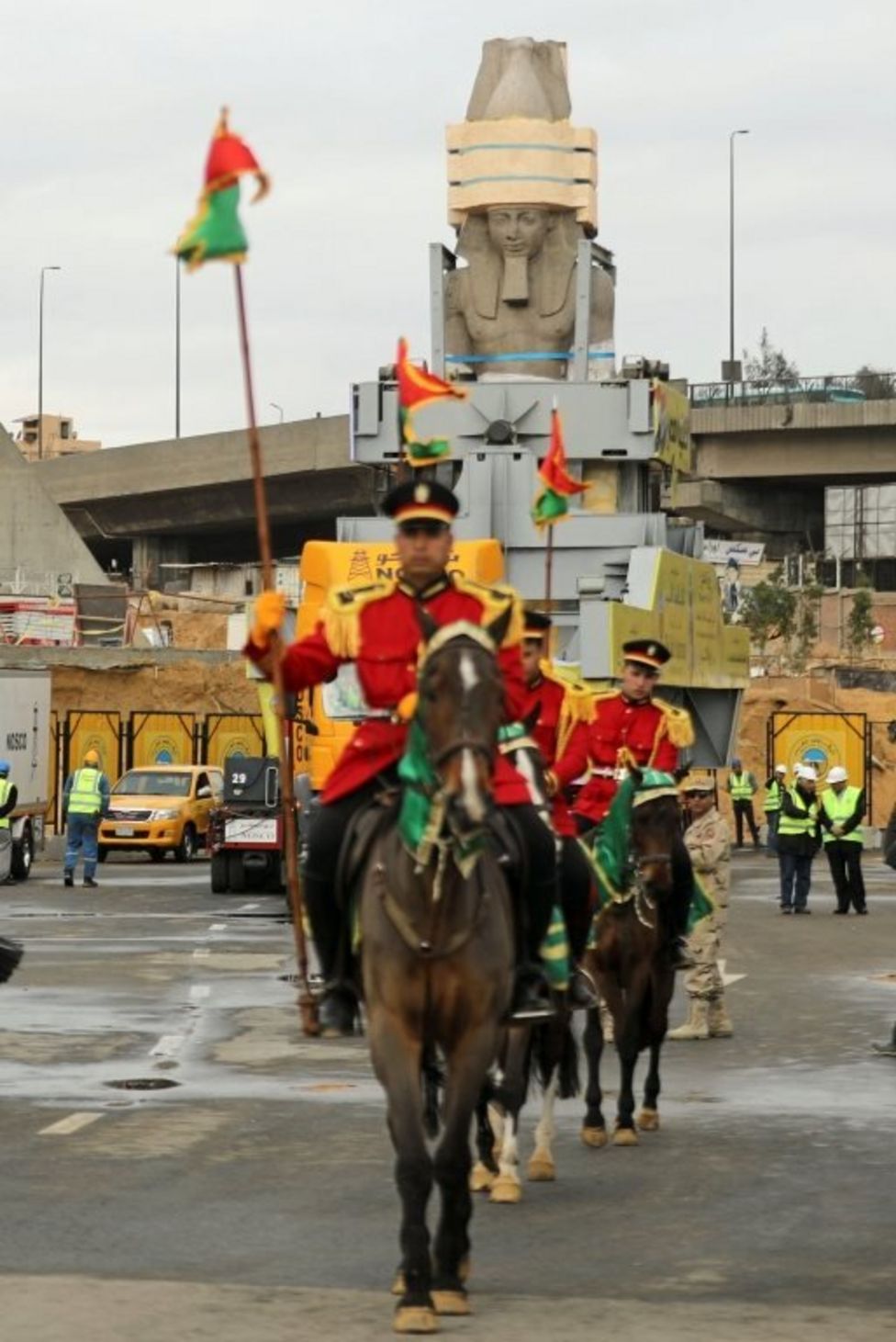 The 3200-year-old ancient statue of the Ramses al-Zayani transit the new museum.