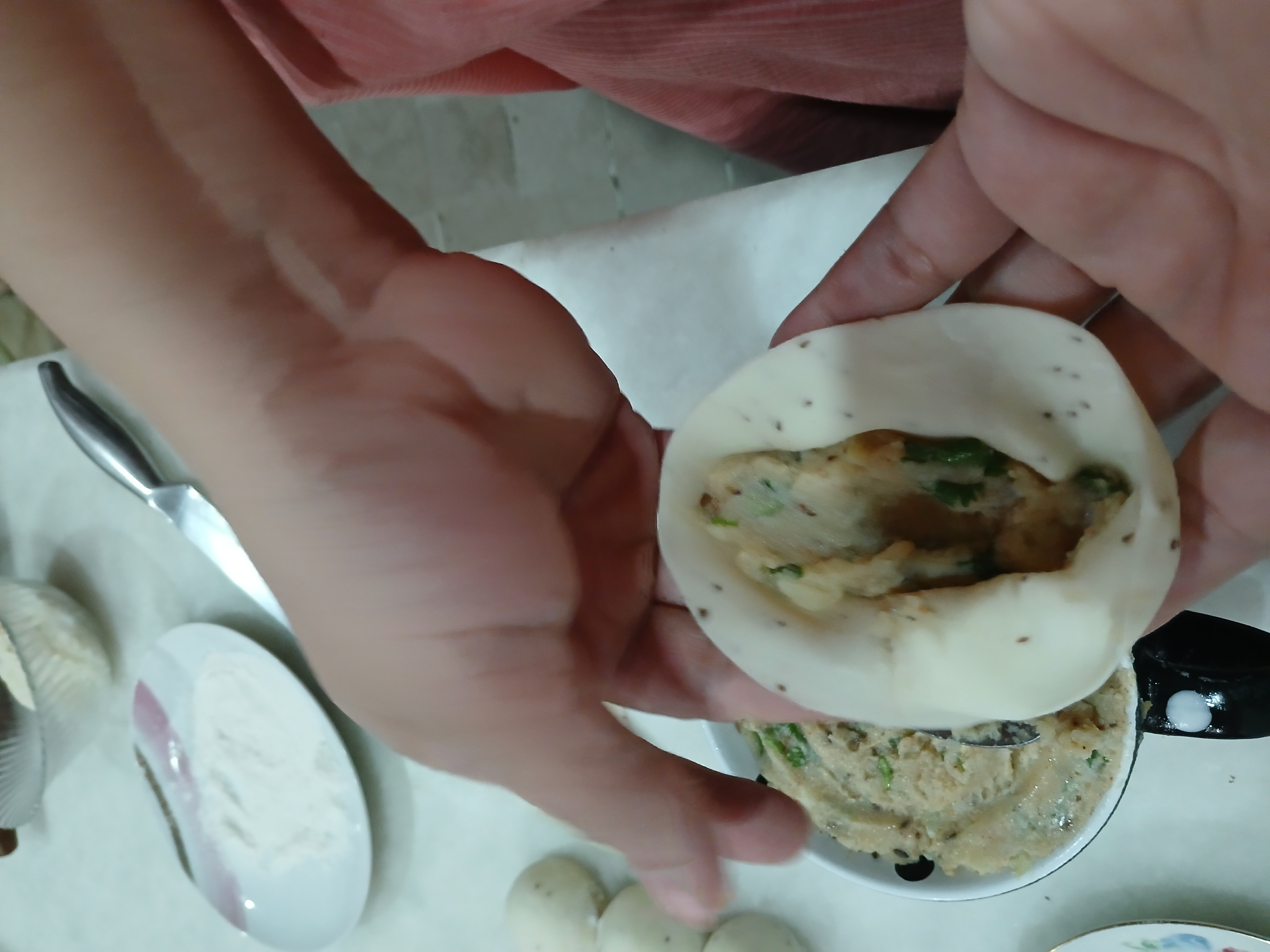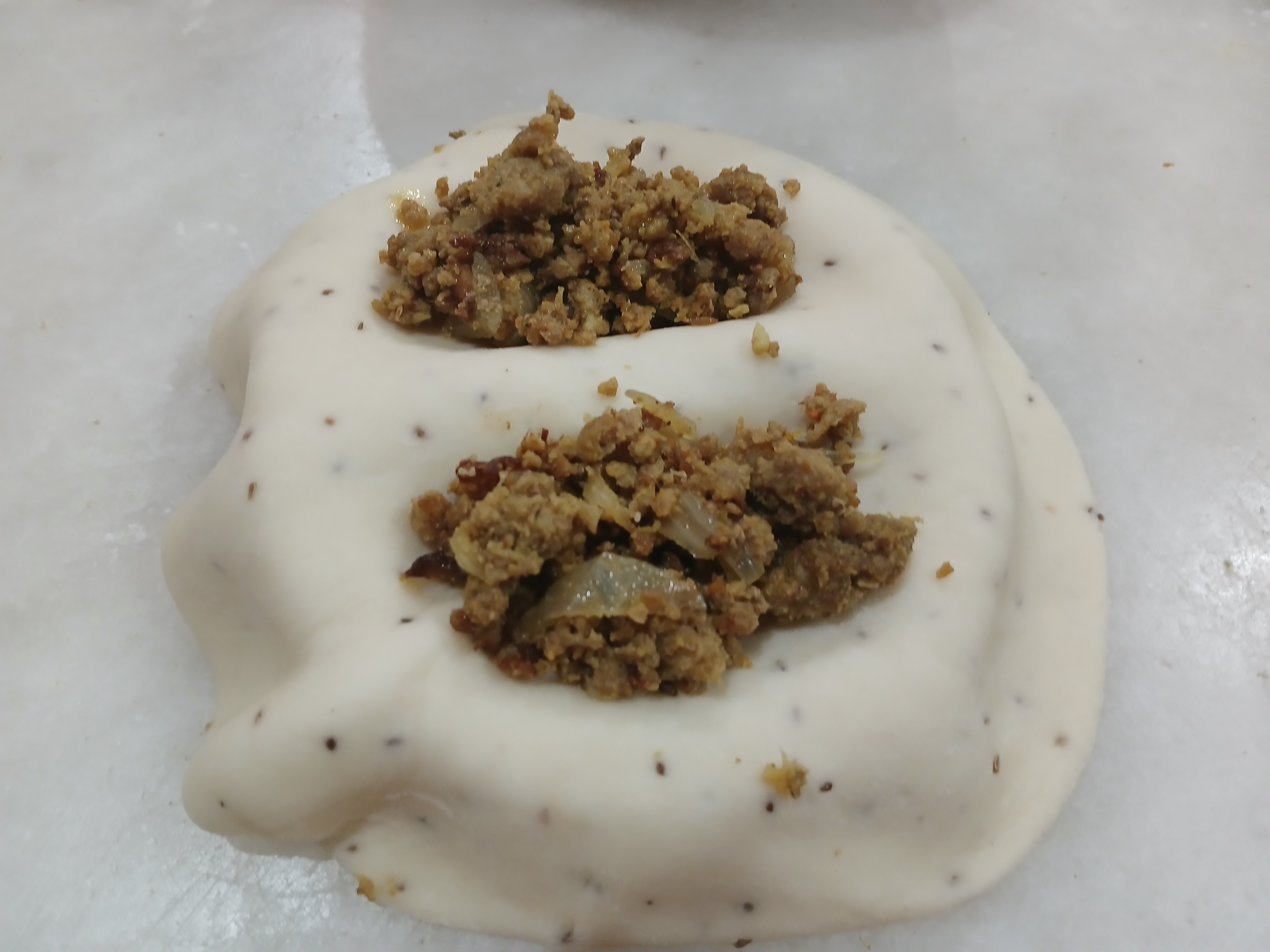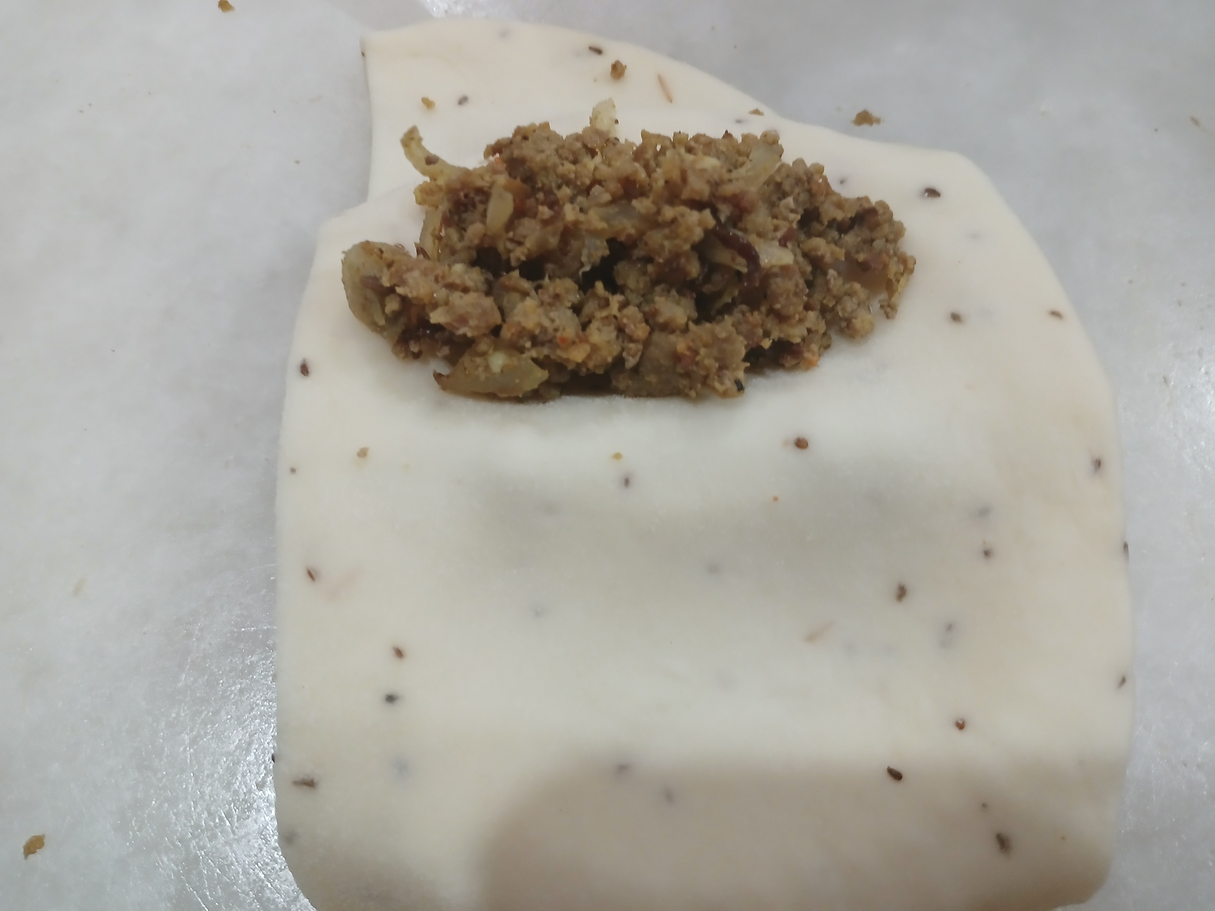 - Fill minced filling in it and seal its edges by pressing mold or fingers.