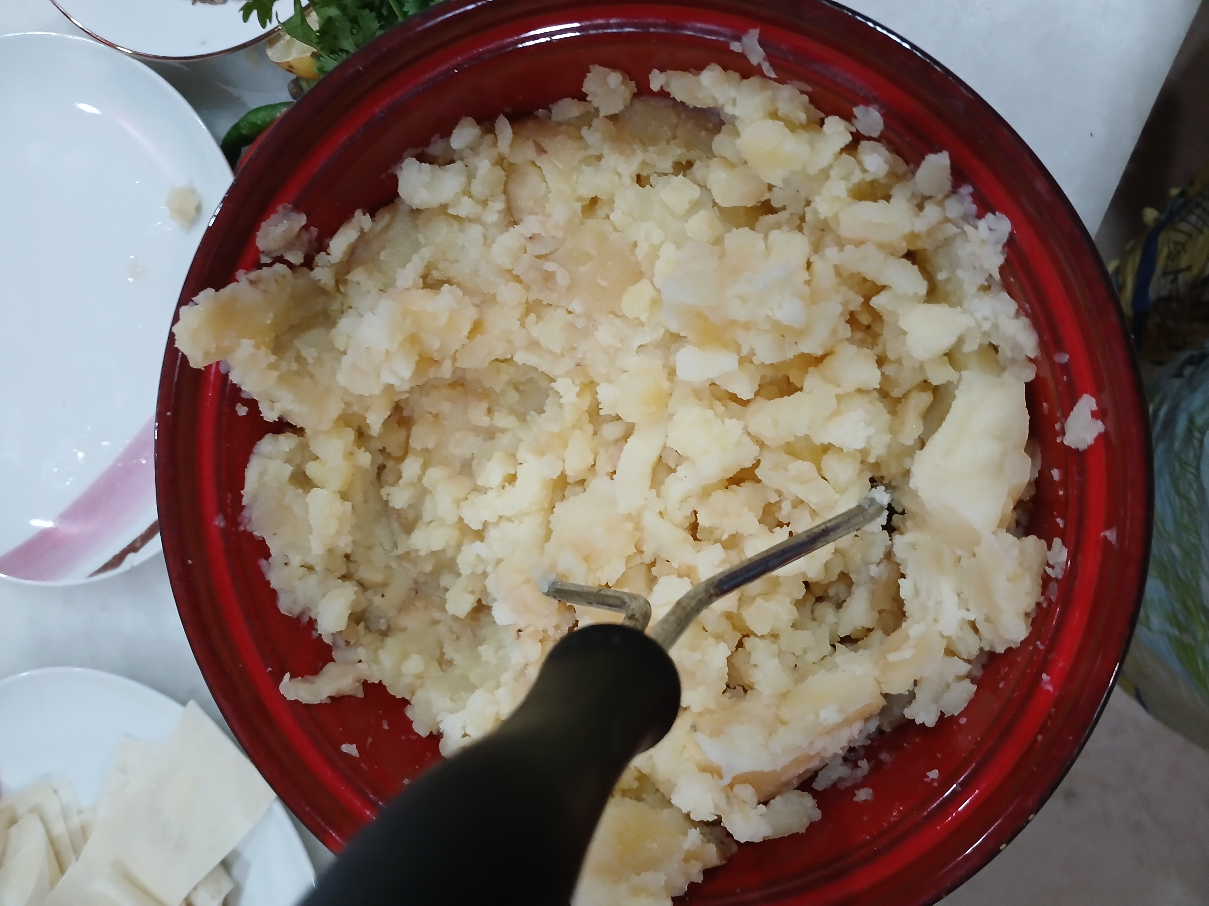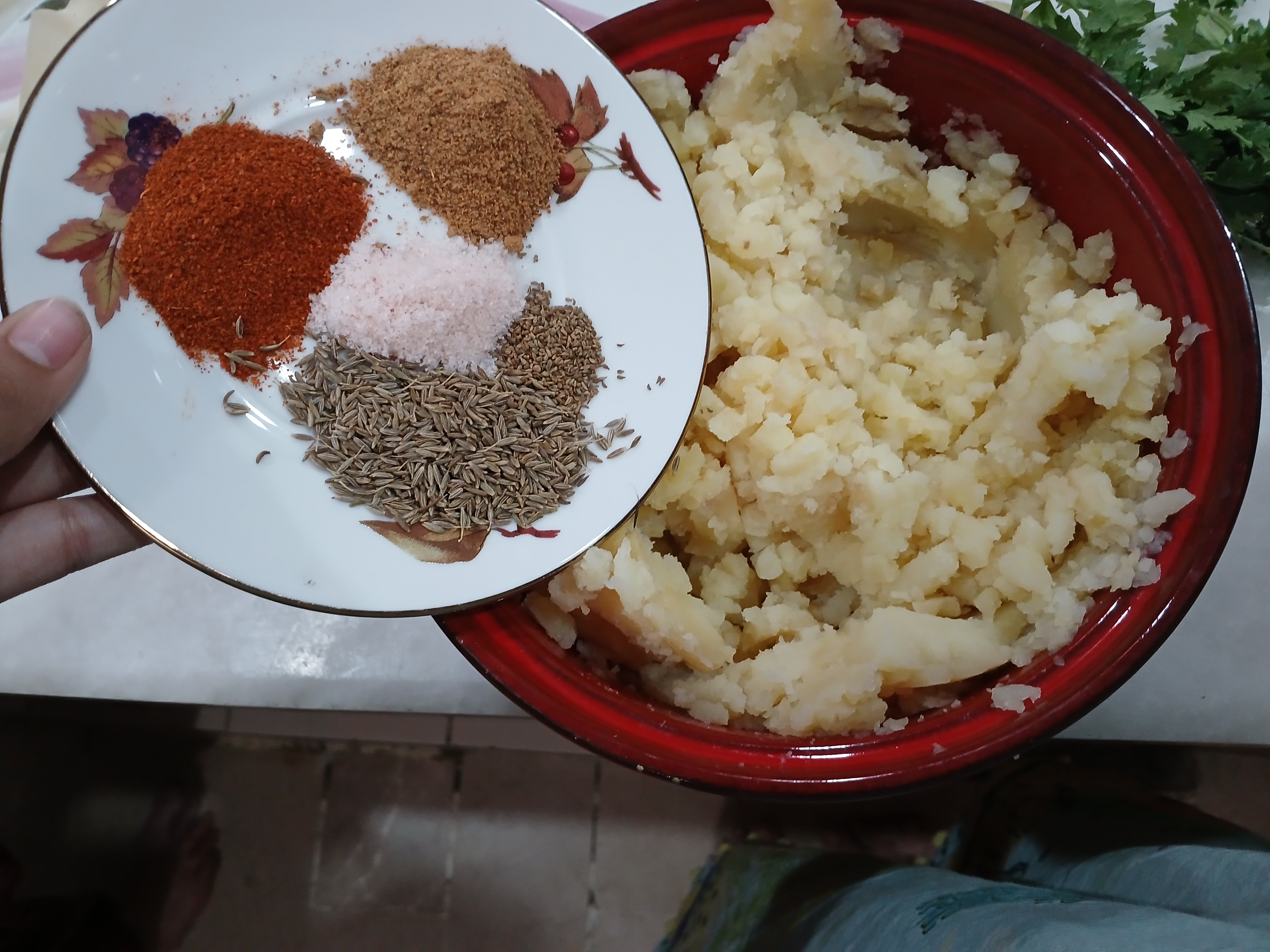 - Mashed potatoes nicely with masher or with hands. Add all ingredients in it and mixed it well . Filling is ready.