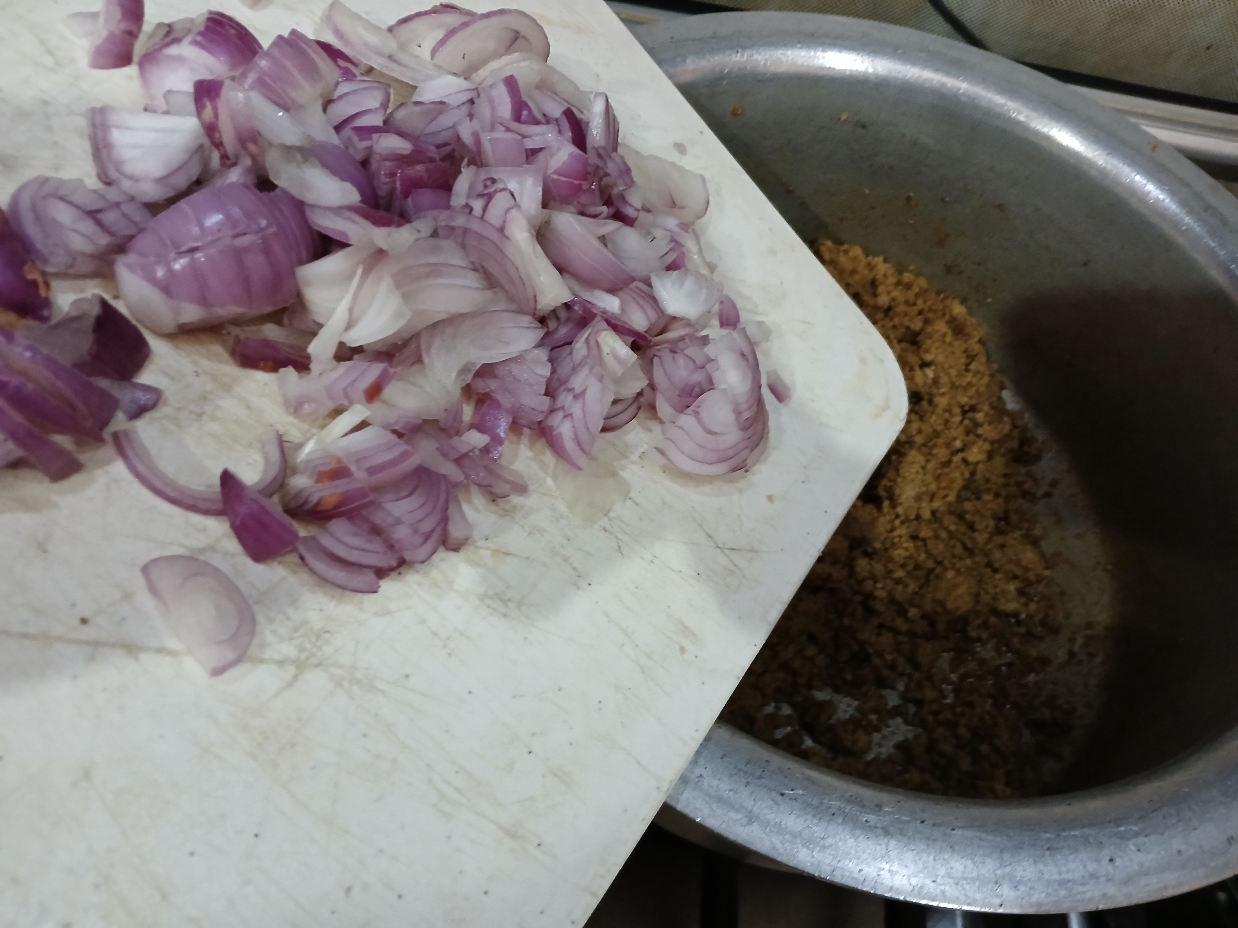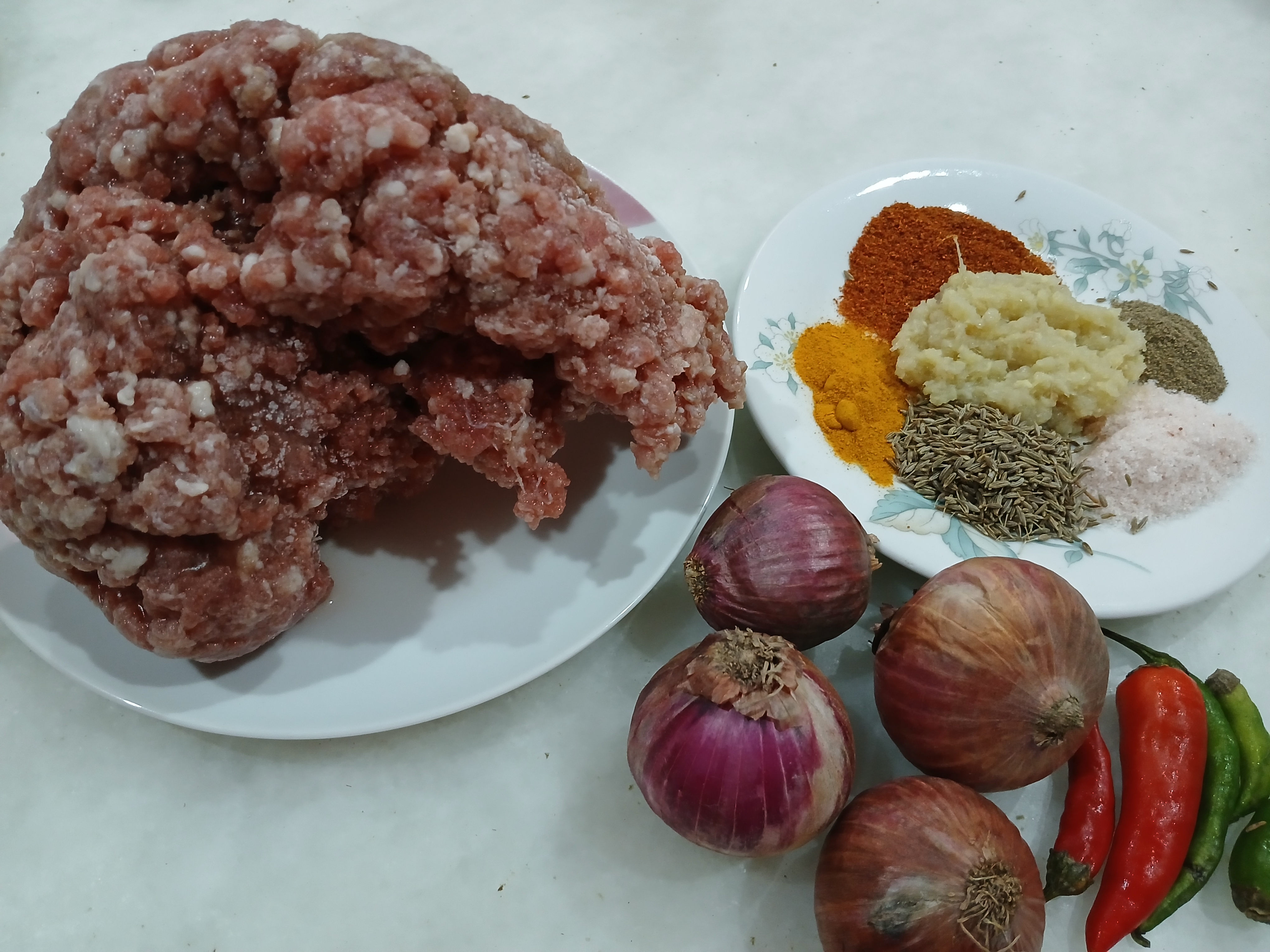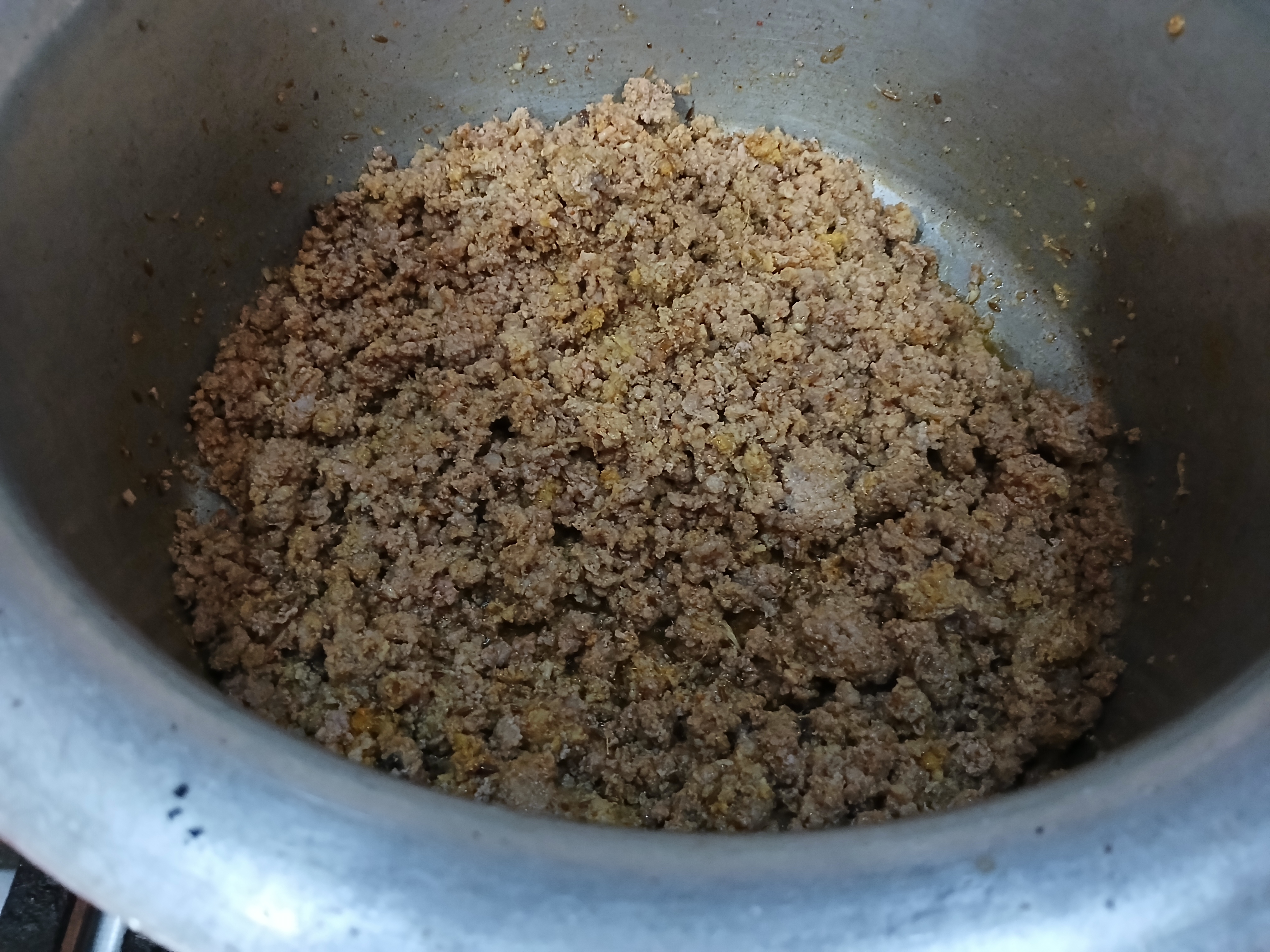 - Add some oil in a pan and fry mince until its colour change then add all spices in it and fry for few minutes. Cook it for 6-8 minutes on low flame. Then add chopped onion in it and cover the lid and cook it for 3-4 minutes more. Filling is ready.