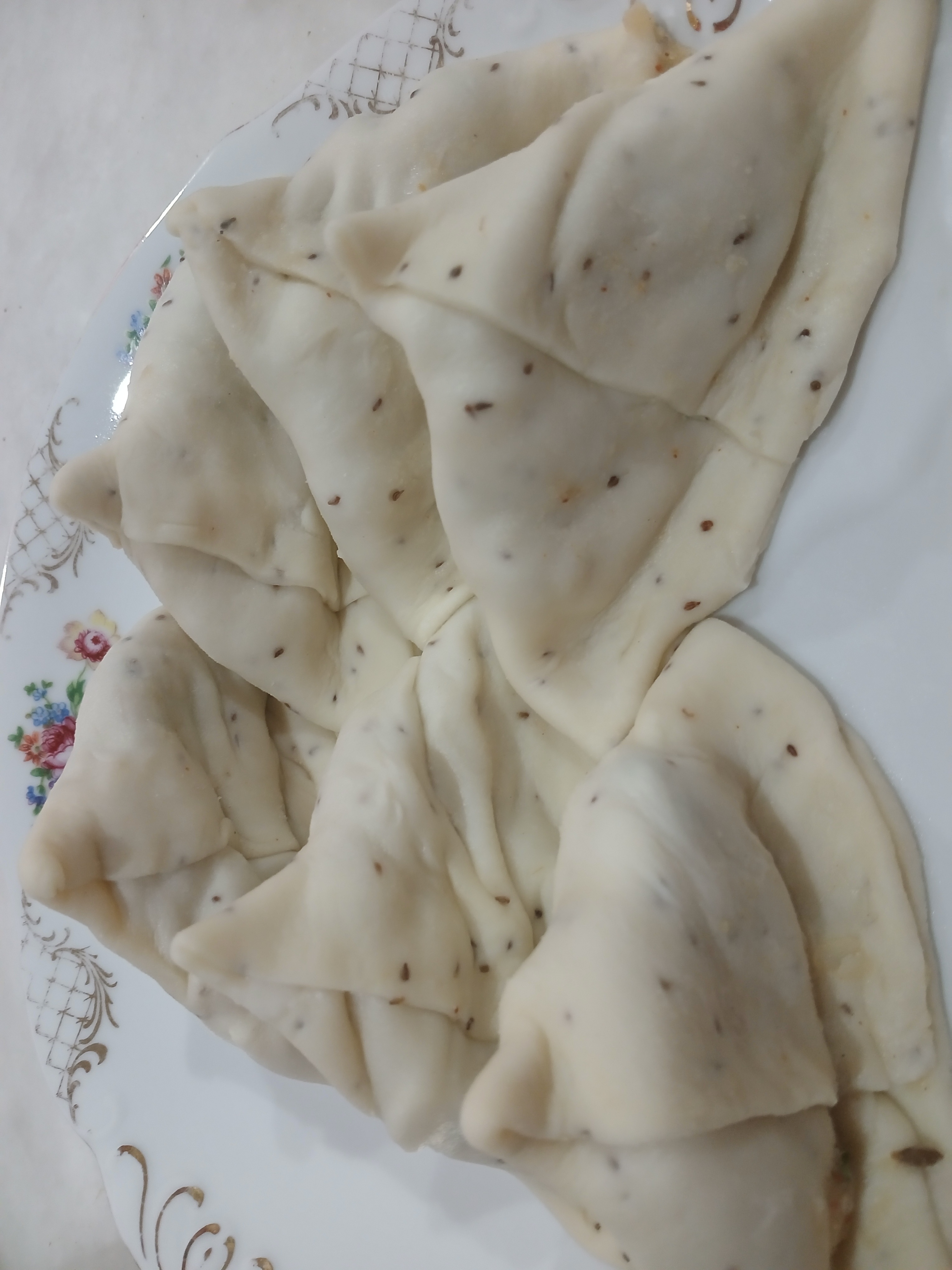 - Fill the pocket with potatoes filling and closed its open side by pressing it with fingers.