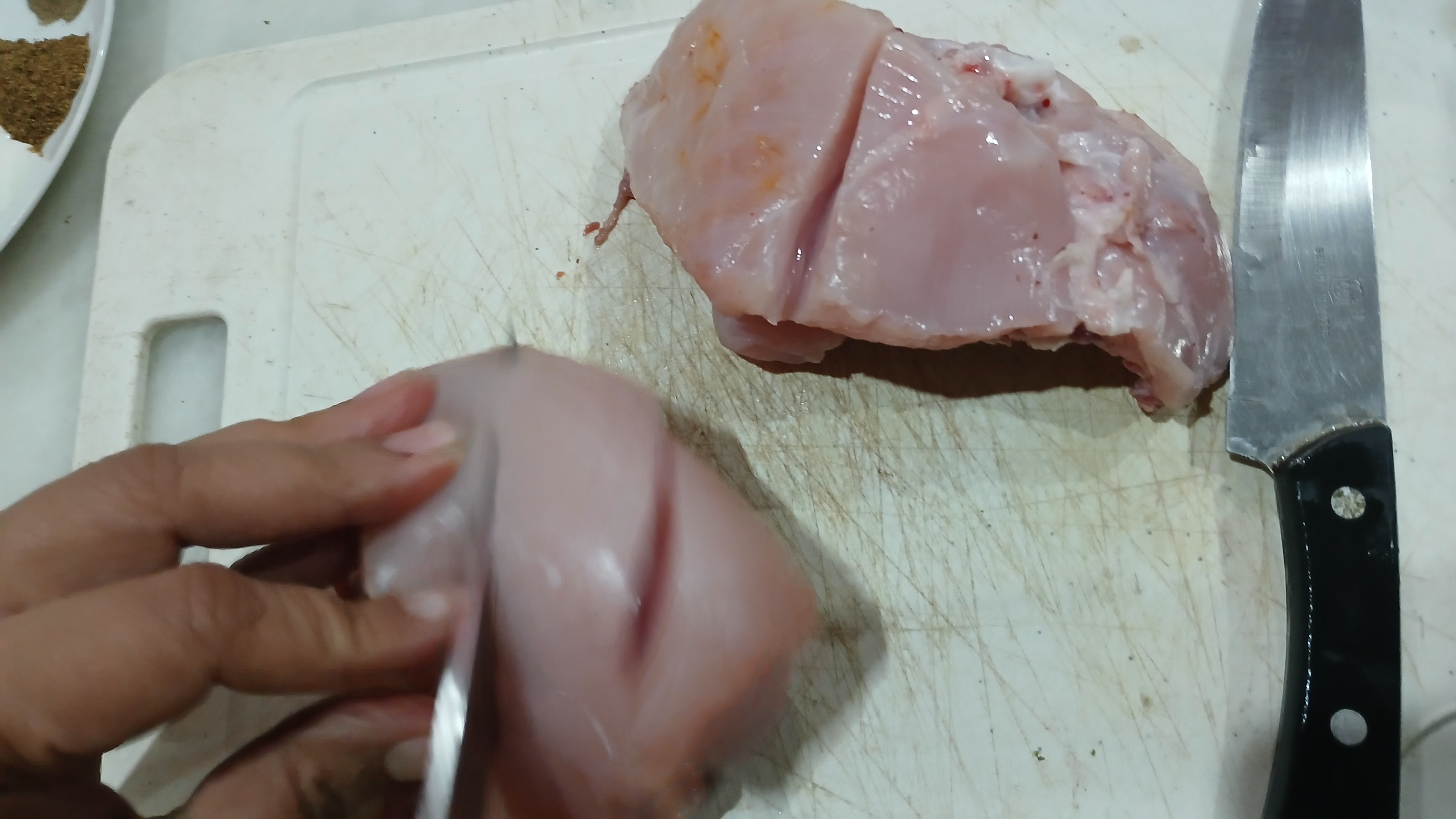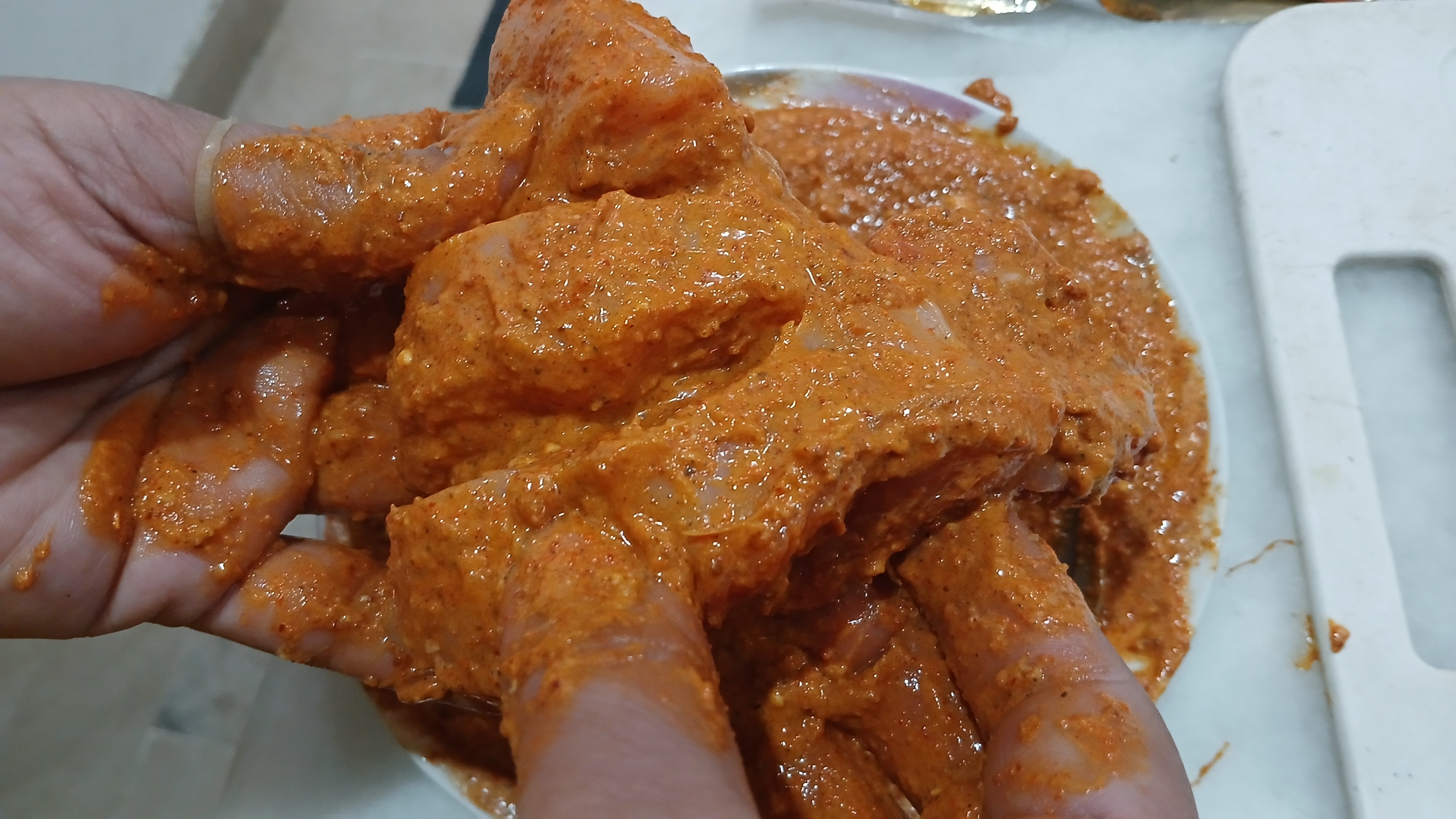 -Wash chicken properly and remove its excess water. Add marks/cuts on chicken tikka pieces.