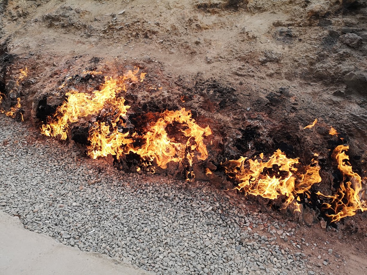 ON THE WAY TO SHAHDAG WE HAD A STOP AT YANARDAG . YANARDAG "THE BURNING MOUNTAIN" IS A PLACE WHERE NATURALLY WE CAN SEE FIRE BURNING AT THE HILL SIDE.