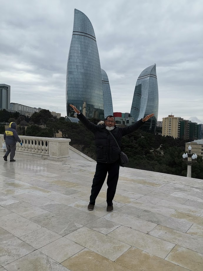 FIRST STOP FOR THE DAY WAS THE FLAME TOWERS ,THERE IS AN AMAZING GARDEN NEXT TO THE FLAMES TOWERS WHERE WE CAN ALSO SEE THE STUPAS OF THE ARMY OFFICERS.
