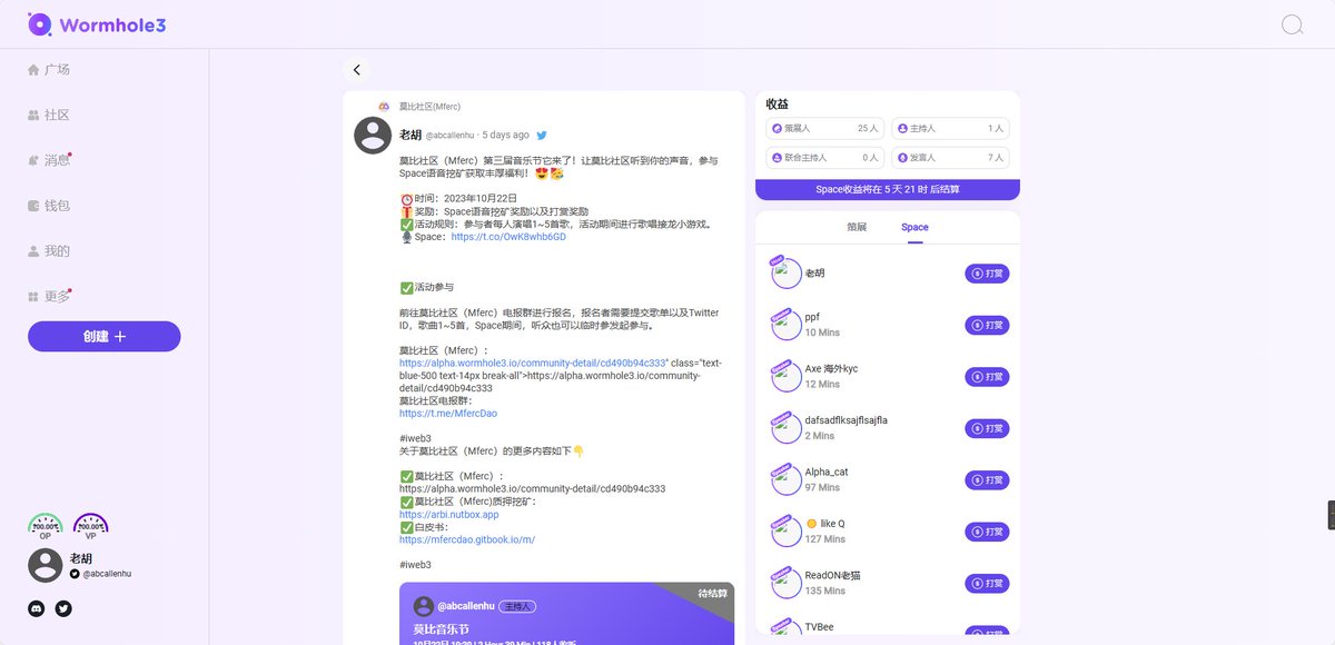 Space语音挖矿奖励领取教程:https://steemit.com/hive-180932/@abcallen/wormhole3-or-space