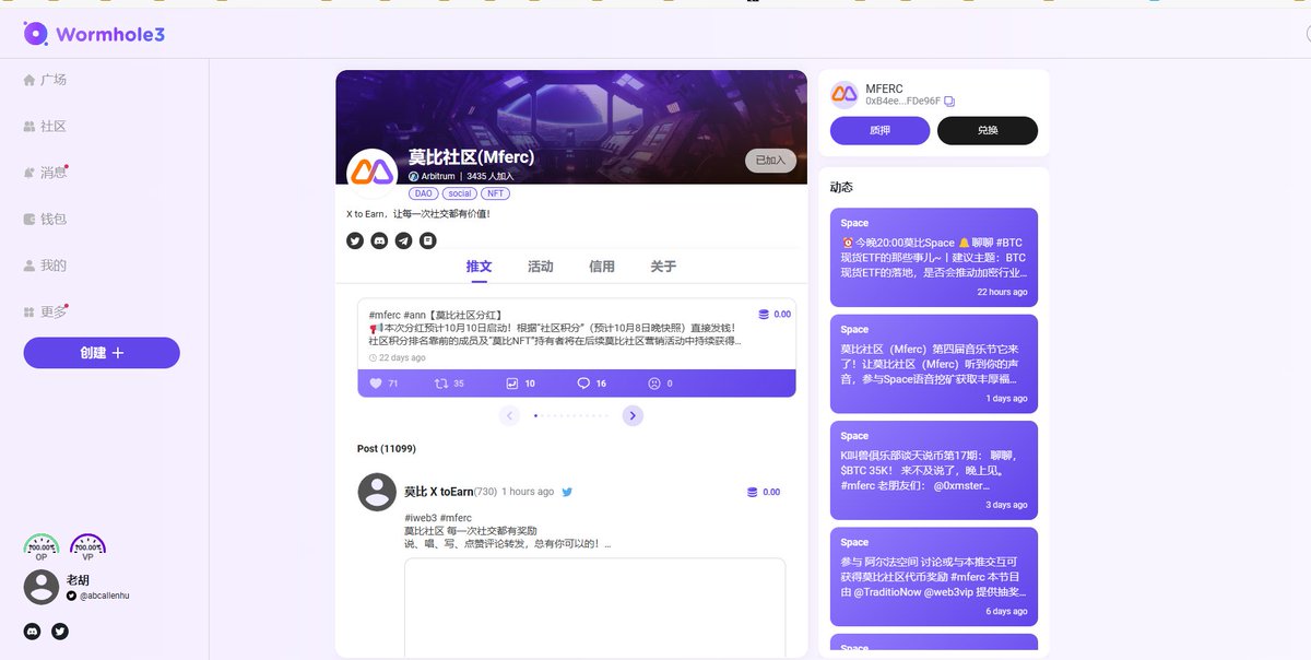 莫比社区(Mferc):https://alpha.wormhole3.io/community-detail/cd490b94c333