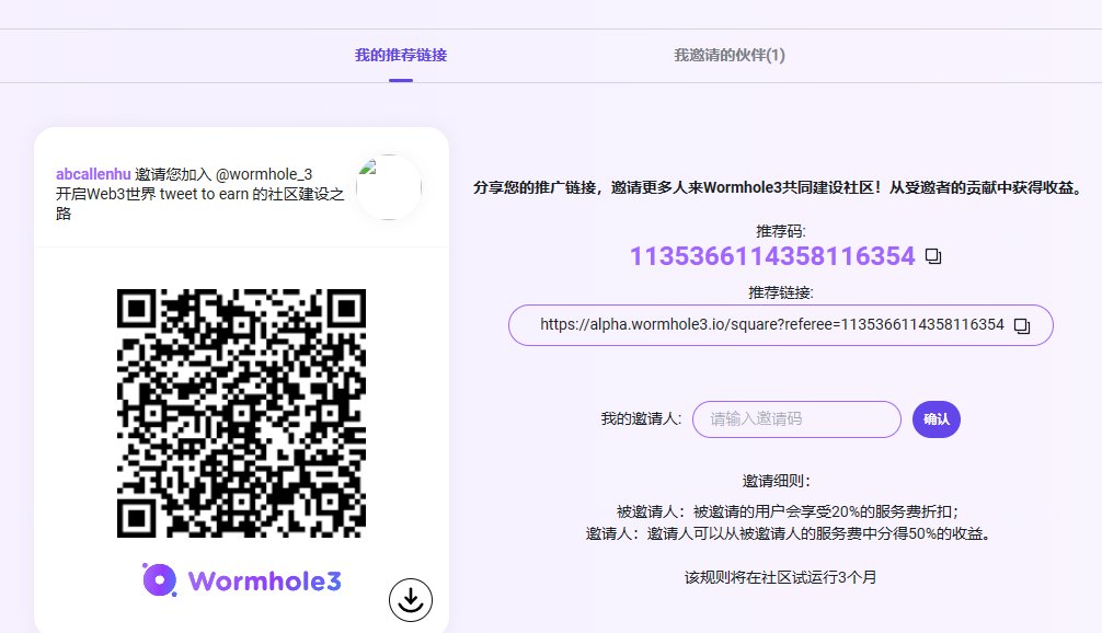邀请链接:https://alpha.wormhole3.io/square?referee=1135366114358116354