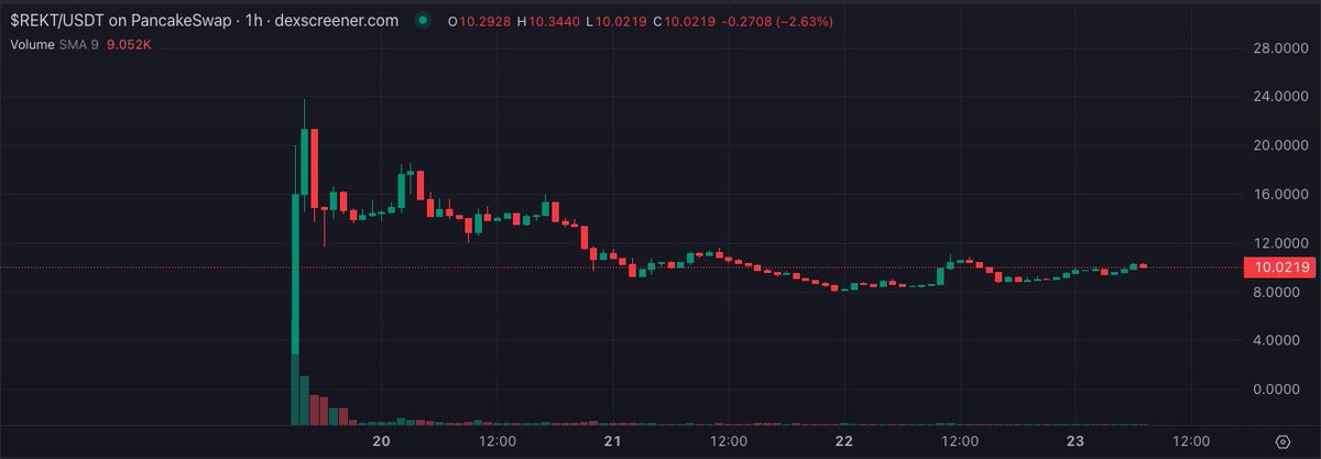 另外 $rekt 我觉得有可能成为pepe,shib这样的meme币。现在10u,市值1000万u。我又加了点仓位。