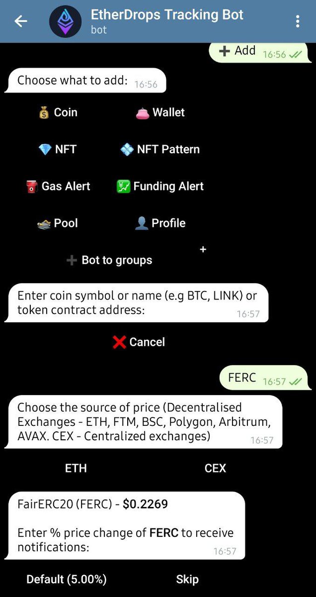 Keep monitoring your FERC assets via EtherDrops BOT on Telegram with follow these steps: