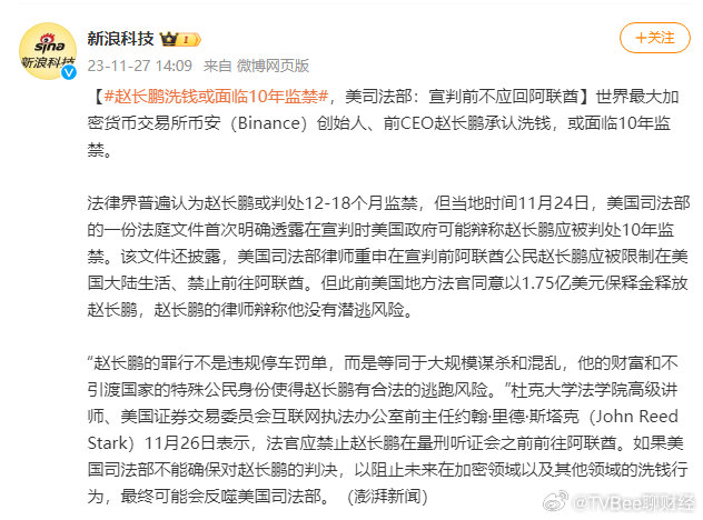 第一,美国司法部的一份法庭文件披露,赵长鹏最长可能面临着10年的监禁。