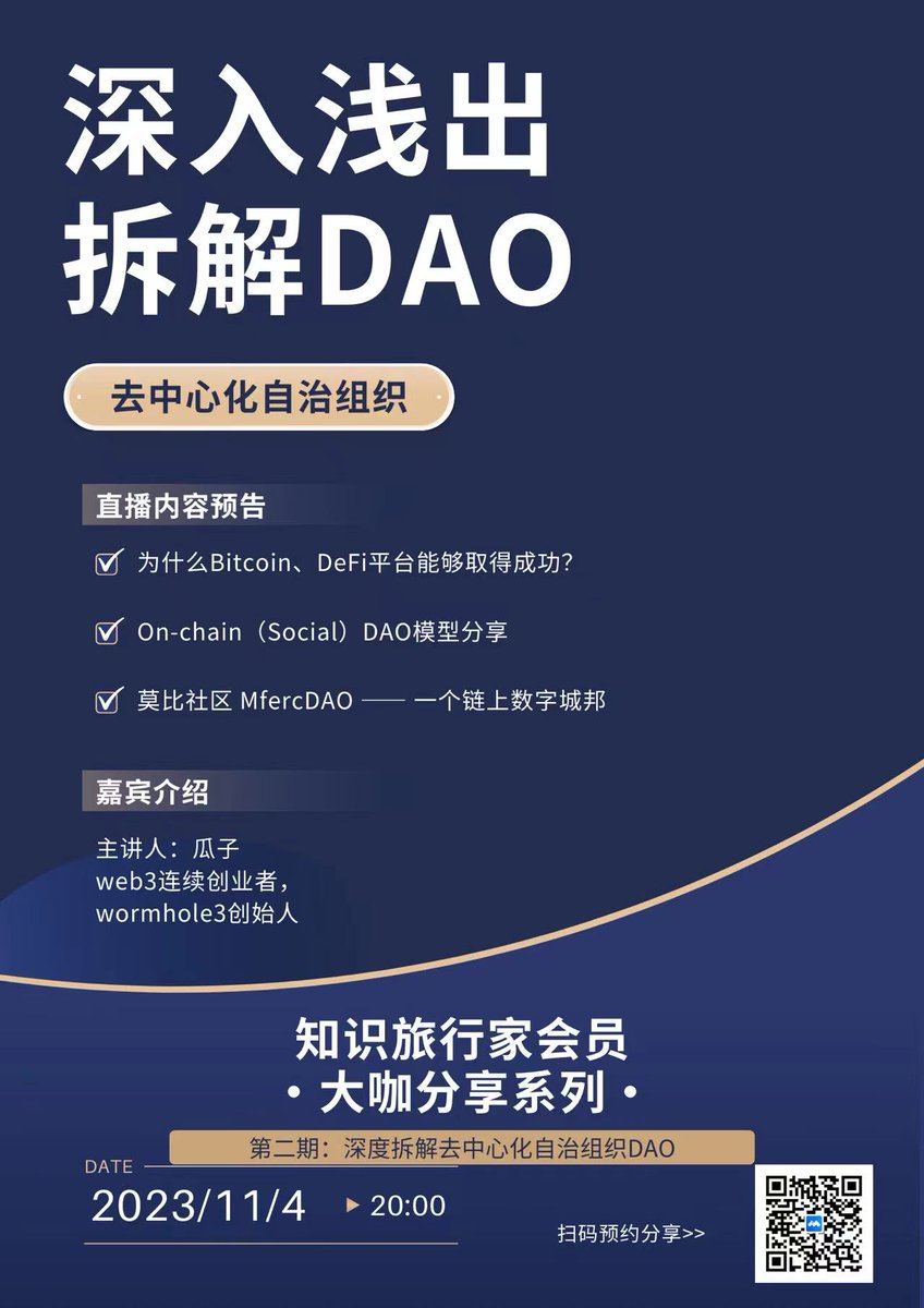 扫码预约一起深入浅出拆解DAOmfercdao (58)in wormhole3 • 2 years ago 扫码预约一起深入浅出拆解DAO,聊聊为什么我们莫比是一个链上数字城邦 #mferc 我们正在押注下一周期的的主要叙事——SocialFi,莫比也在致力于构建全球最大的SocialFi加密社区,让代币经济与社区真正良性结合💪🏻 #mferc