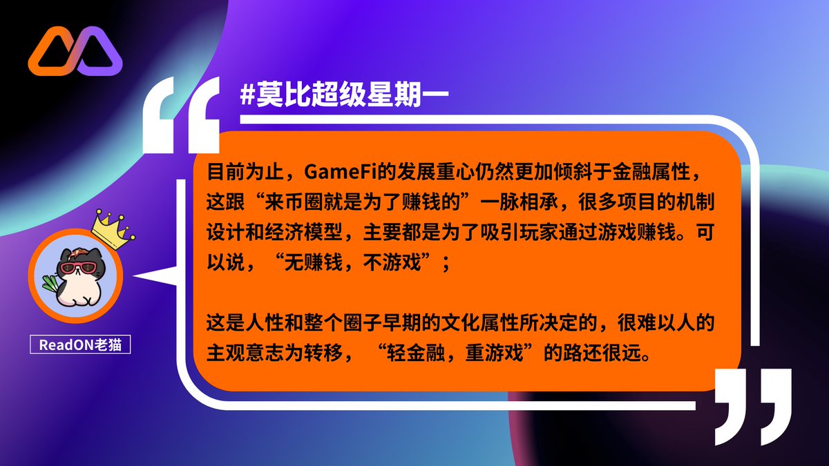 #莫比超级星期一 每周活动获胜者公布! #mferc mfercdao (58)in wormhole3 • 2 years ago #莫比超级星期一 每周活动获胜者公布! #mferc 📍来自 @readonlm 对上周提问的回答:Gamefi究竟玩的是游戏还是金融游戏?该如何看待现在的Gamefi? 作为莫比社区的一员,晚些时候会将10万 #mferc 的奖励打到社区账户当中,本活动每周举行,不光会给予实际的代币激励,还提供创作流量支持! #莫比超级星期一 #mferc