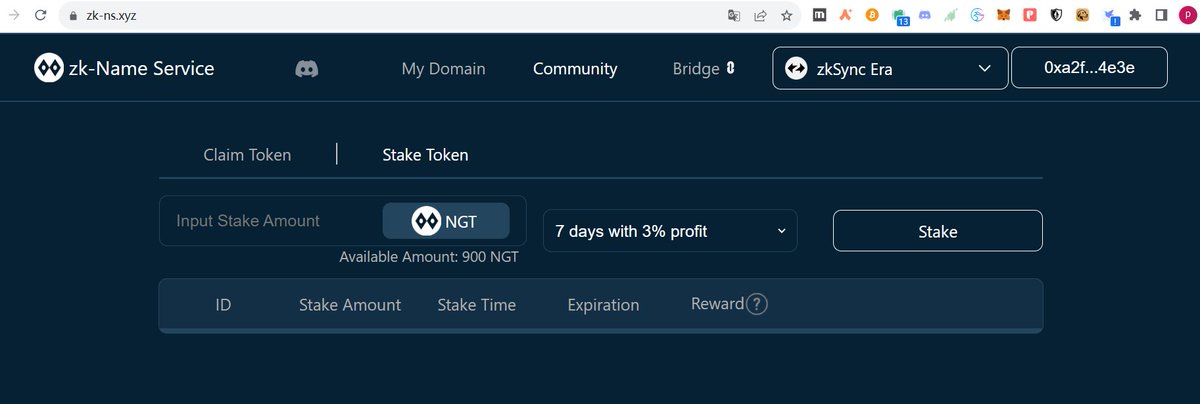STARK和ZKSYNC上面的域名项目,人少不卷。注册完成后赠送1000个代币 $NGT,可以领取质押赚取更多的代币 $NGT。#mferc