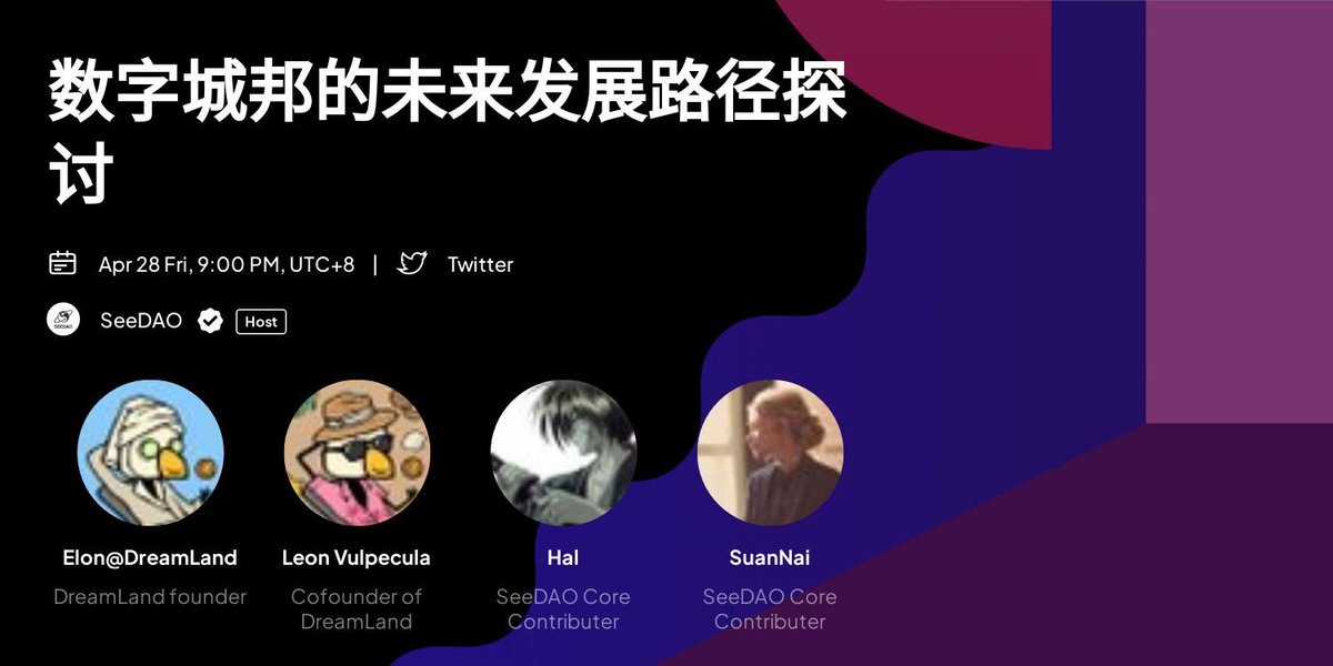 ⏰数字城邦的未来发展路径探讨seedao (56)in wormhole3 • 3 years ago ⏰数字城邦的未来发展路径探讨 【SeeDAO 协作+工具】Vs 【Dreamland 社交 + 交易】 欢迎大家来收听老炮儿唠嗑,关于未来数字城邦的发展趋势! 🔗链接直达:https://t.co/w82pLvDQMl #iweb3
