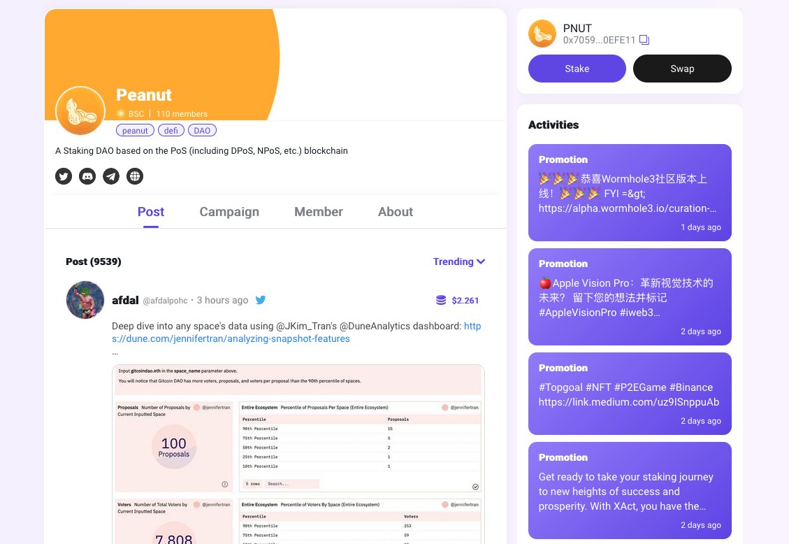 Wow! There are already 9539 posts in the Peanut community on Wormhole3. You can tweet and tag #peanut to earn $PNUT. https://alpha.wormhole3.io/community-detail/cab1b9a9ee34 #peanut #ann #iweb3