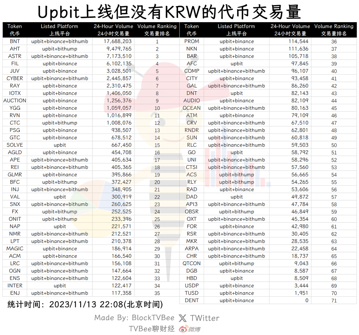 Upbit潜力代币交易量总结