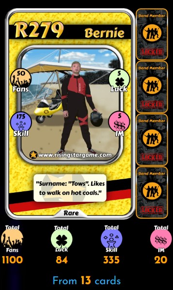 Rising Star is a NFT trading card game where you start your path as a lowly "busker", or street performer, and work your way up to being a global music star.